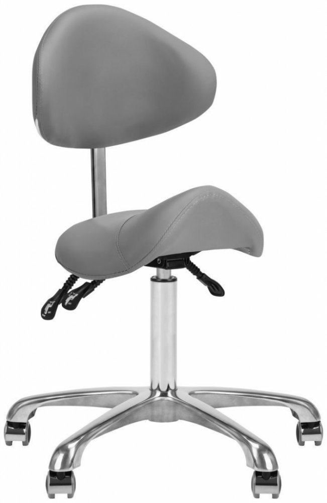 Kosmetická stolička model 1004 profilovaná. Pohodlná, exkluzivní, stabilní kosmetická stolička s opěradlem a profilovaným sedákem na pětihvězdičkové, velmi stabilní základně. Nastavitelný ve třech vrstvách:- plné nastavení úhlu sedadla- plné nastavení výšky opěradla- Nastavení nahoru a dolů