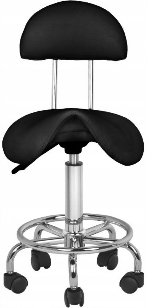 Pohodlná, stabilní kosmetická stolička s opěradlem, s profilovaným sedákem, na pětihvězdičkové základně s plastovými kolečky. K dispozici v ČERNÉ barvě, nepostradatelný kus nábytku v kosmetické ordinaci.rozměry balení 40x40x23 cm Kadeřnická a kosmetická stolička 6001 BlackPohodlná, stabilní kosmetická stolička s opěradlem a dobře tvarovaným sedákem má pětiramenný rám a plastová kolečka. Je k dispo...
