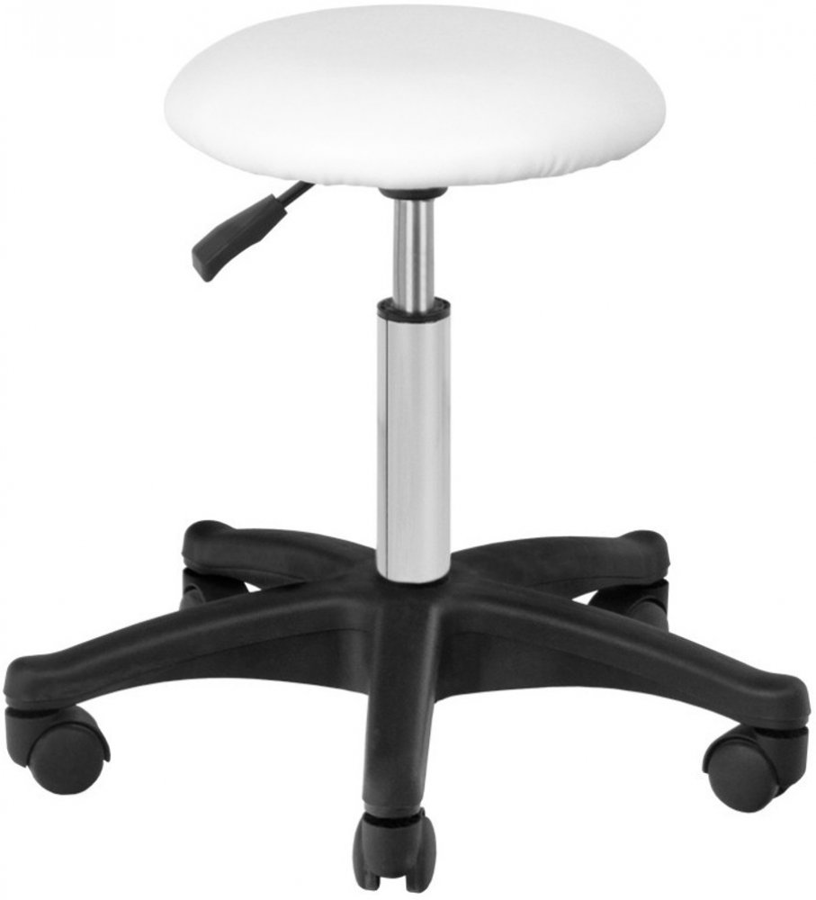 Kadeřnický a kosmetický stolek AM-312 WhitePohodlná a stabilní kosmetická stolička má pětiramenný rám s plastovými kolečky. Je nepostradatelným kusem nábytku v kosmetickém salonu. - Rozměry: Technické údaje: - hydraulicky nastavitelný - 5-ramenný rám s plastovými kolečky - rozměry balení: 55 x 55 x 22 cm- - hmotnost s balením: 7,5 kg - počet balení: 1
