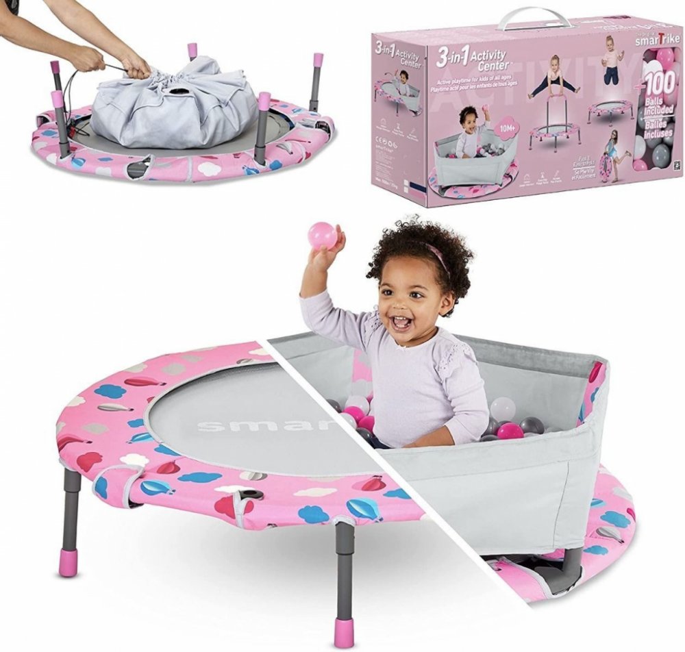 Tato multifunkční trampolína (průměr 90 CM) a míčové jámy a bazén je skládací, a proto se snadno a rychle čistí. Vhodné do interiéru i exteriéru. Vhodné pro použití od 10 měsíců, díky našemu bezpečnému elastickému pružinovému systému, po 12 měsících lze míčky přeměnit na trampolínu s držákem a po 24 měsících lze držák odstranit a trampolínu lze používat až 5 let . Lze rychle sestavit bez nářadí. OBSAHUJE 100 MÍČEK. smarTrike Activity Centre 3v1 trampolína a bazén s míčky růžovýCentrum aktivit od společnosti SmarTrike je ideální pro gymnastiku a hry. Lze jej přestavět tak, aby plnilo tři různé funkce: Trampolína s madlem nebo bez něj a bazén s míčky. Madlo poskytuje dítěti dobrou oporu, aby si zvyklo na neznámou podlahu trampolíny. Trampolína stojí na 5 stabilních nohách, které lze pro úsporu místa sklopit. Centrum aktivit lze pro úsporu místa také složit, což usnadňuje jeho skladování.Details:Průměr: 90 cmSe 100 míčky do kuličkového bazénuSkládá se pro úsporu místaDoporučený věk:Pro děti od 2 do 5 letBazén s míčky a trampolína s opěrnou tyčí od 12 měsíců Jak lépe rozvíjet smyslové a motorické dovednosti dítěte než pomocí centra aktivit 3 v 1? Začíná jako bazén s míčky, ideální pro děti od 10 měsíců. Jak rostou, roste s nimi - mění se na výukovou trampolínu, která jim pomáhá zvládnout skákání s bezpečnostní tyčí, a nakonec na trampolínu pro volný skok, na které mohou skákat samostatně.