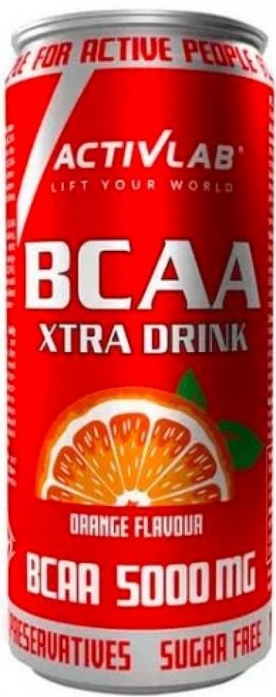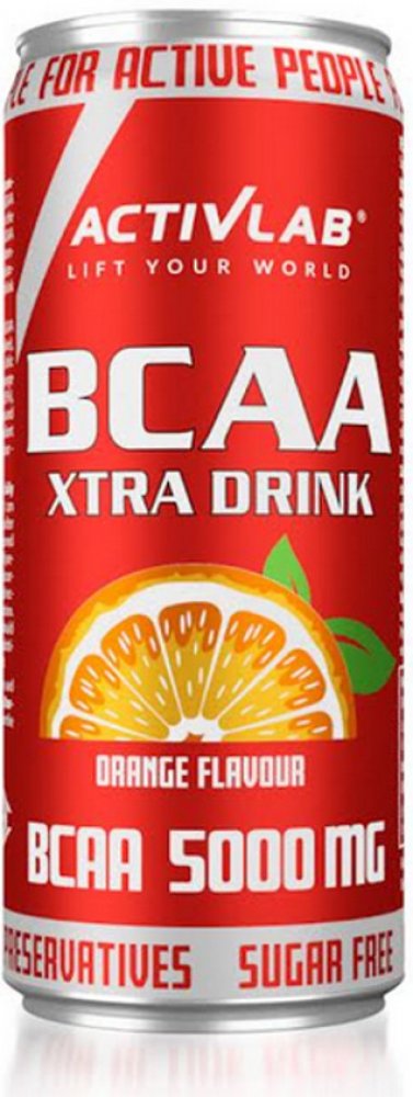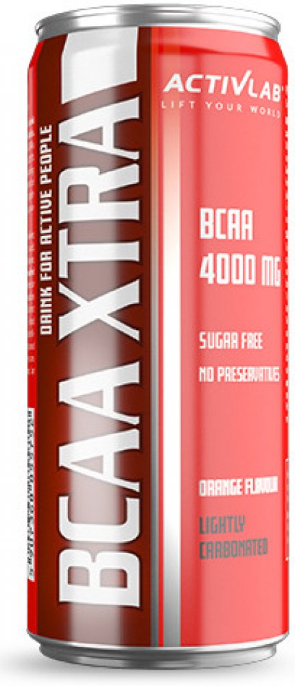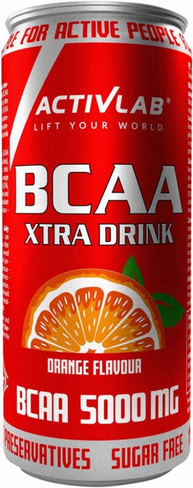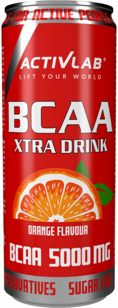 Activlab BCAA Xtra Drink je inovativní funkční nápoj s aminokyselinami BCAA, určený pro podporu vysoce výkonnostního a rekreačního tréninku. Obsahuje 5,000 mg aminokyselin s rozvětveným řetězcem (BCAA) v optimálním poměru a je k dispozici v praktické formě plechovky. Ideální pro ty, kteří se aktivně věnují sportu, jak sportovně, tak amatérsky. Pravidelné užívání nápoje může pomoci chránit a regenerovat svaly, zvýšit jejich odolnost a urychlit r Ecover y po intenzivním cvičení. Doplňky stravy Fakta: Velikost balení: 330 ml Velikost porce: 330 ml Porce v balení: 1 Doplňkové informace Množství V jedné porci % denní hodnoty BCAA z toho: L-leucin L-isoleucin L-valin 5000 mg 2500 mg 1250 mg 1250 mg * * Denní hodnota není stanovena. Další složky: Voda, oxid uhličitý, BCAA aminokyseliny (L-leucin, L-isoleucin, L-valin), regulátor kyselosti: kyselina citronová, aroma, koncentrát pomerančové šťávy (0.5%), sladidla: sukralóza a acesulfam K, antioxidant - kyselina L-askorbová, barvivo - karoteny. Doporučené použití: Před nebo po tréninku. Nápoj podávejte nejlépe chlazený. Upozornění: Výrobek nelze používat jako náhradu (náhražku) pestré stravy. Vyvážená strava a správný životní styl jsou důležité pro fungování lidského organismu. Nepřekračujte doporučenou maximální denní dávku. Po otevření skladujte na chladném, suchém místě.