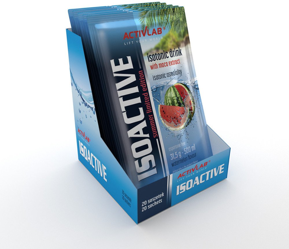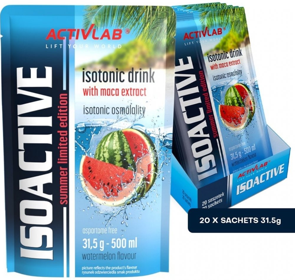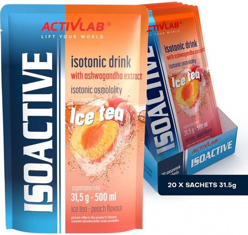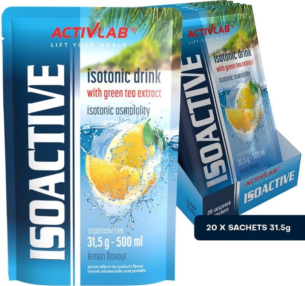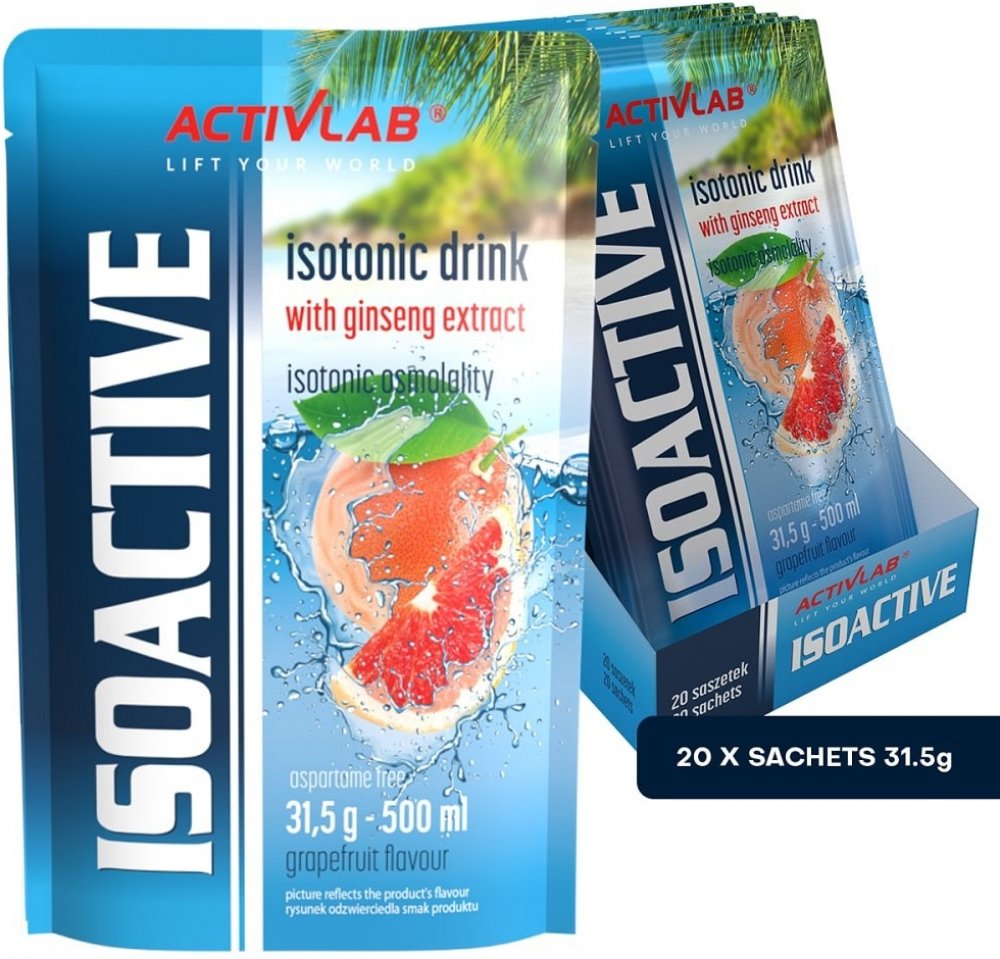 ISO ACTIVE – izotonický koncentrát v prášku k přípravě nápoje. Optimální kombinace sacharidů, minerálů a vitaminů skupiny B pomáhá zajišťovat přísun energie, elektrolytů a dobrou hydrataci v průběhu fyzické aktivity. Je navíc obohacený o extrakt ze zeleného čaje (citron), ženšen (grep) a guaranu (pomeranč).