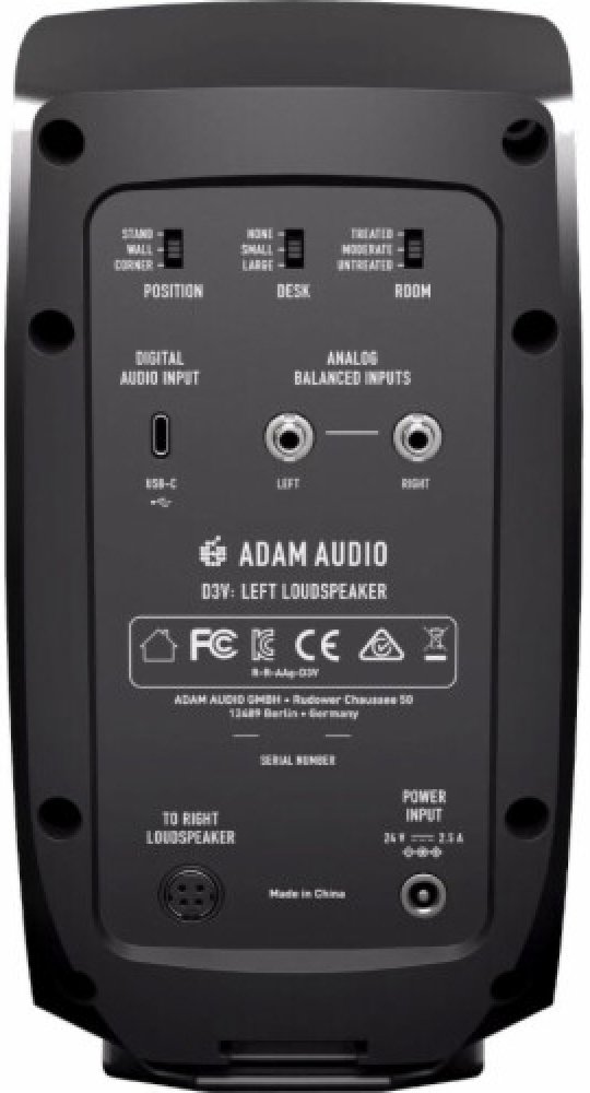 Adam D3V jsou kompaktní aktivní poslechové monitory určené pro skladatele, producenty a milovníky hudby, jejichž hlavní předností je subtilní konstrukce a zabudovaný DAC převodník s USB připojením. Díky možnosti velmi blízkého poslechu a interní korekci akustiky místnosti jsou D3V ideálním řešením také pro zvukové inženýry na cestách a mobilní studia.Každý aktivní pár je vybaven 3,5“ hliníkovými woofery, které jsou doplněny oboustrannými pasivními zářiči pro rozšířenou odezvu ve spodním spektru, takto malý monitor pak dosahuje pokrytí basových frekvencí až do 45 Hz. Charakteristický výškový reproduktor AMT je začleněn v podobě 1,5“ D-ART modelu, který zajišťuje stejně přesný a nezkreslující vysoký tón, jímž jsou tyto zavedené monitory známé. Bi-amp zesilovač disponuje výkonem 80 W pro woofery, respektive 40W pro D-ART měniče.Nastavení monitoringu lze korigovat přepínači akustiky místnosti s podporou DSP, reproduktory jsou dodávány se stolními stojany a rozhraním pro montáž na mikrofonní stativ (3/8").Výraznou předností modelu D3V je rozhraní USB-C, které umožňuje, aby se systém choval jako výstupní zvukové zařízení, a eliminuje tak potřeby dalšího externího zvukového rozhraní pro přehrávání. Nechybí ani analogové vyvážené vstupy TRS pro tradiční zvukové aplikace, či přední konektor pro sluchátka a multifunkční ovladač hlasitosti.Obsah balení 1x pravý reproduktor D3V 1x levý reproduktor D3V 2x výklopný stojan 6x stolní podložka 1x kabel pro propojení reproduktorů (2 m) 1x napájecí zdroj a síťový kabel D3V 1x kabel USB-C na USB-C (1 m) 1x adaptér USB-C na USB-A Stručný návod k použití a bezpečnostní pokyny