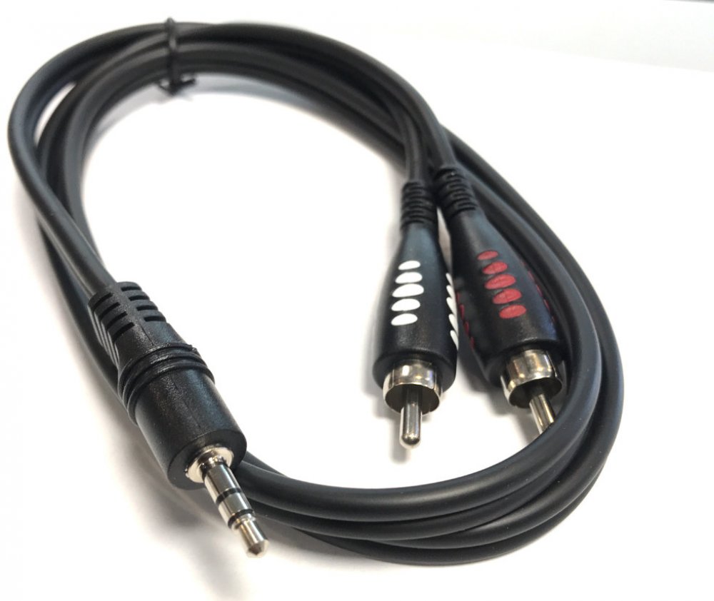 Vysoce flexibilní černý dvojlinkový kabel KIK122-T délky 1m   vlastnosti:       * 2 x 0.22 mm 2       * 1 x Jack stereo 3.5 mm / 2 x RCA Phono