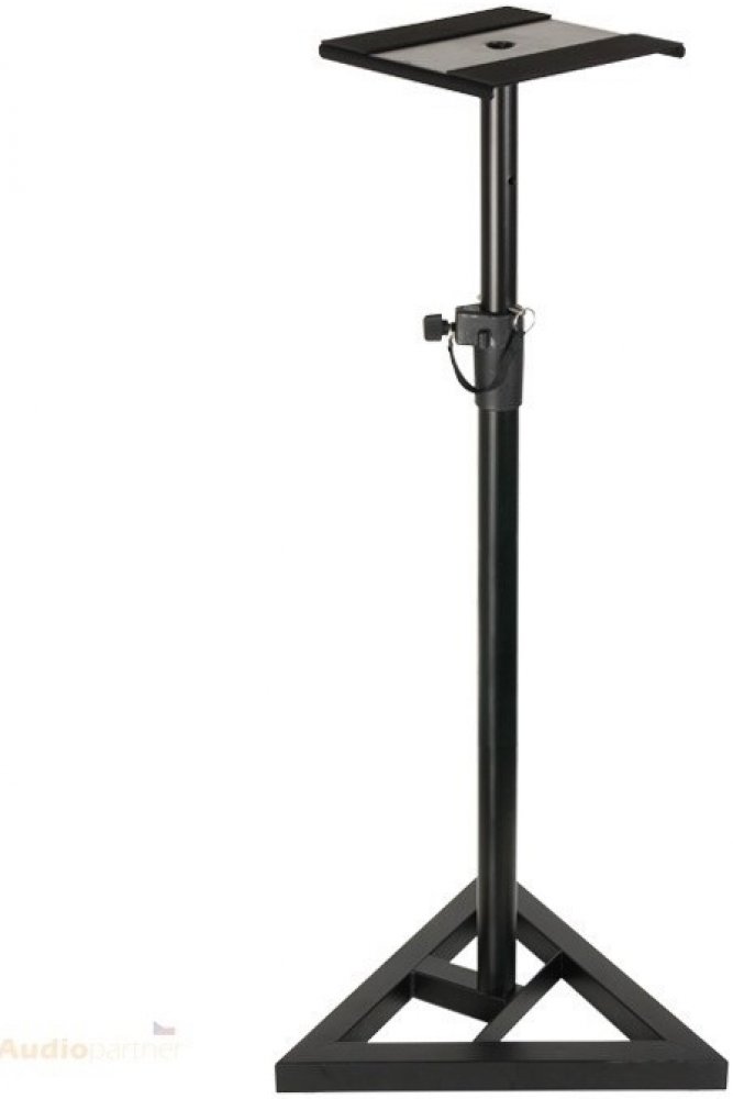 Skládatelný stojan pro studiové monitory. Konstrukce stojanu je vyrobena z pevné a odolné oceli a podepřená strabilnou základnou ve tvaru trojúhelníku. Podpůrnou tyč je možné výškově nastavovat v rozmezí od 91,5 do 150 cm v 12cm krocích pomocí uzamykacího systému. Plocha na odkládání monitorů s rozměrem 230 x 230 mm je potažena špeicálnou pěnou pro tlumení vibrací. Barevné provedení: Black