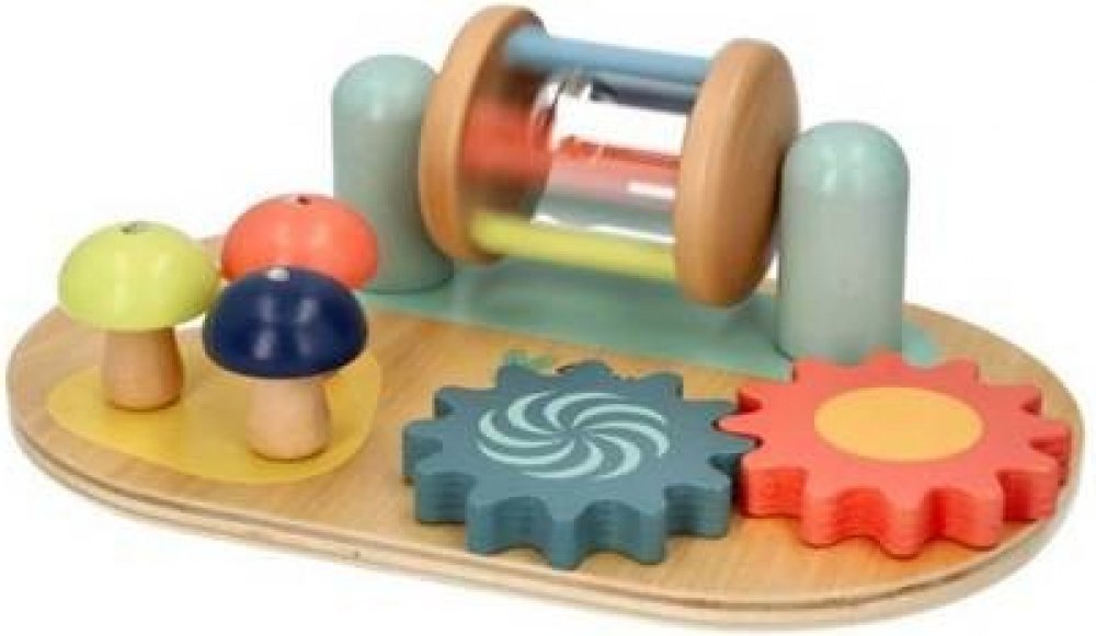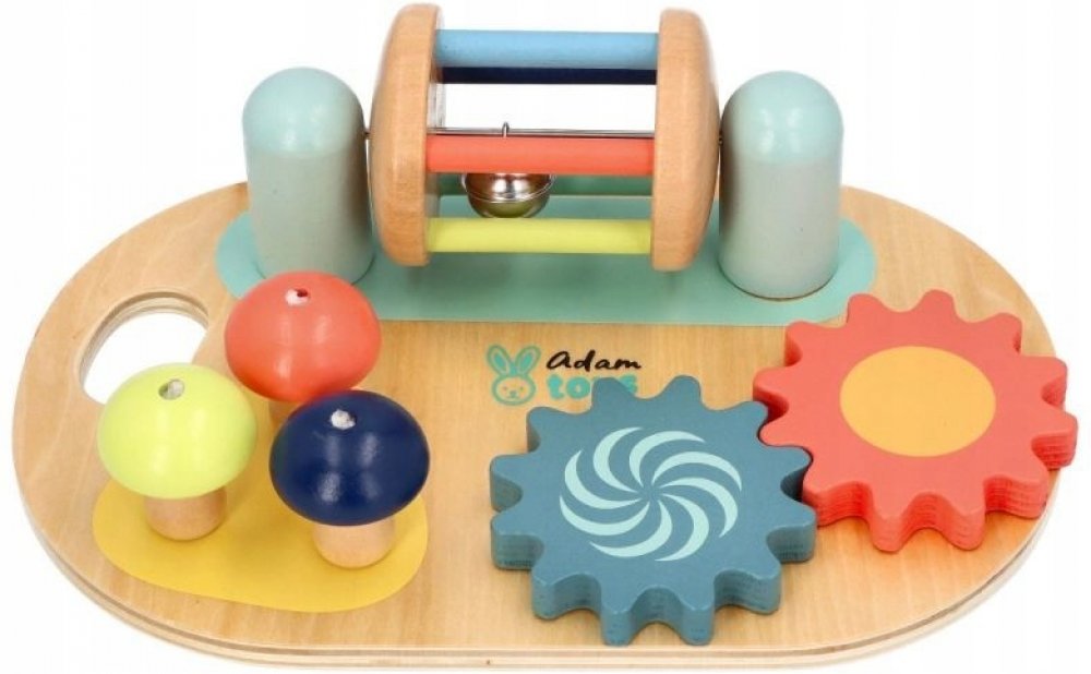 Nejste příznivcem velkých hraček jako jsou manipulační stolky? Máme něco, co vás bude zajímat. Malá pracovní deska pro batole k umístění na rovnou plochu skvěle nahradí manipulační stolek. Prvky na tabuli jsou barevné a jistě upoutají pozornost dítěte. O zajímavou zábavu se postarají ozubená kola na přívlač, houby na ohýbání nebo naviják. Hra má pozitivní vliv na rozvoj koordinace ruka-oko a manipulačních schopností malých dětí.