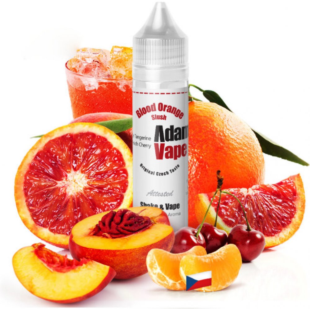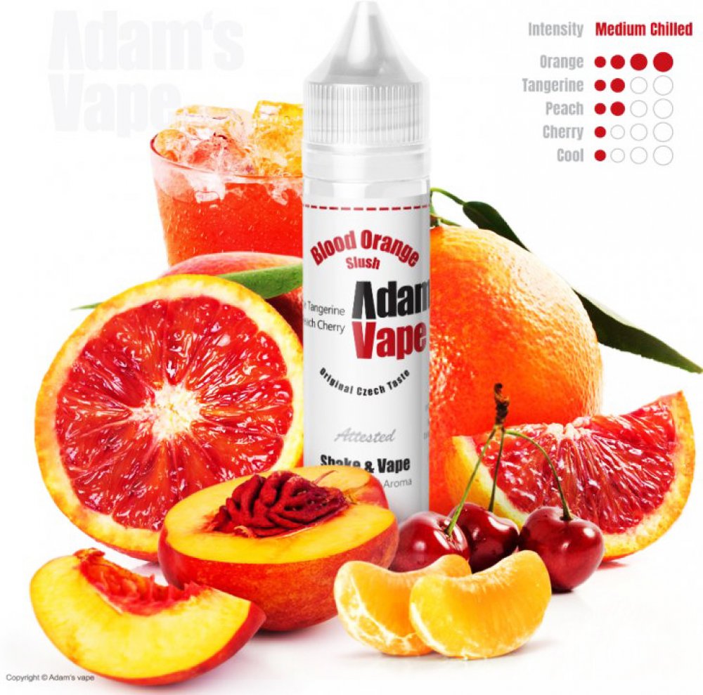 Příchuť Adams Vape Blood Orange Slush to je ledová tříšť s červeným pomerančem, mandarinkou a broskví. Adams Vape Blood Orange Slush je příchuť shake & vape od společnosti Adams Vape z řady příchutí Classic Shake and Vape.