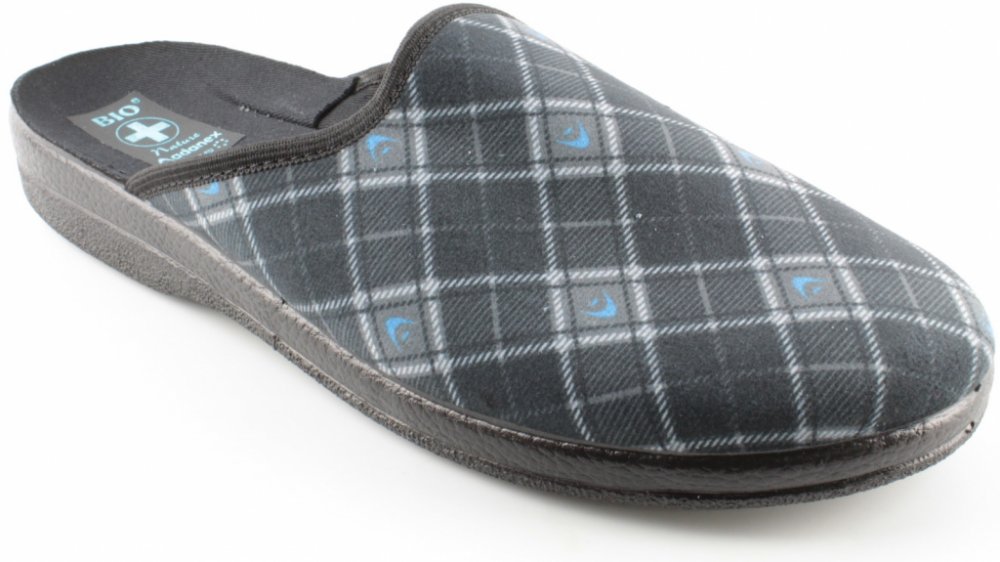 Pánské papuče značky ADANEX s plnou špičkou. Obuv tohoto tradičního výrobce domácí obuvi je vyrobena z vysoce kvalitních materiálů a vyznačuje se dlouhodobou barevnou i tvarovou stálostí.Model je vyroben z pevné látky v decentním vzoru. Měkká pohodlná stélka s lehkou nebarvící podešví. Obuv se zdravotním certifikátem COLM. Svršek textil, podšívka textil, podešev polyuretan