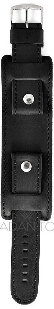 Univerzální kožený řemínek na hodinky s podložkou má šířku 24 mm, černou barvu a stříbrnou přezku. Řemínek je prošitý černou nití. Rozměr podložky je 138 x 42 mm. Délka části řemínku s přezkou je 90 mm a délka části s dírkami je 125 mm. Tloušťka řemínku je 2,5 mm a je vyroben na Slovensku.