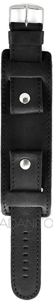 Univerzální kožený řemínek na hodinky s podložkou má šířku 26 mm, černou barvu a stříbrnou přezku. Řemínek je prošitý černou nití. Rozměr podložky je 138 x 42 mm. Délka části řemínku s přezkou je 90 mm a délka části s dírkami je 125 mm. Tloušťka řemínku je 2,5 mm a je vyroben na Slovensku.