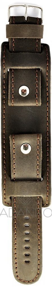 Univerzální kožený řemínek na hodinky s podložkou má šířku 26 mm, tmavě hnědou barvu a stříbrnou přezku. Řemínek je prošitý hnědou nití. Rozměr podložky je 138 x 42 mm. Délka části řemínku s přezkou je 90 mm a délka části s dírkami je 125 mm. Tloušťka řemínku je 2,5 mm a je vyroben na Slovensku.