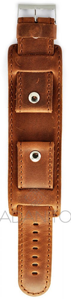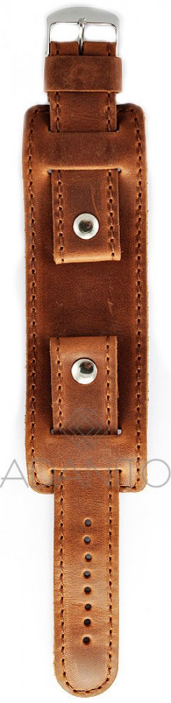 Univerzální kožený řemínek na hodinky s podložkou má šířku 24 mm, světle hnědou barvu a stříbrnou přezku. Řemínek je prošitý hnědou nití. Rozměr podložky je 138 x 42 mm. Délka části řemínku s přezkou je 90 mm a délka části s dírkami je 125 mm. Tloušťka řemínku je 2,5 mm a je vyroben na Slovensku.