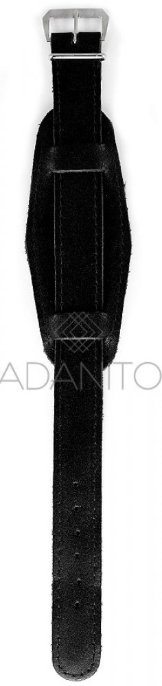 Univerzální kožený řemínek na hodinky s podložkou má šířku 18 mm, černou barvu a stříbrnou přezku. Řemínek bez podšívky je prošitý černou nití. Rozměr podložky je 105 x 40 mm. Celková délka řemínku i s přezkou je 255 mm. Tloušťka řemínku je 1,8 mm a je vyroben na Slovensku.