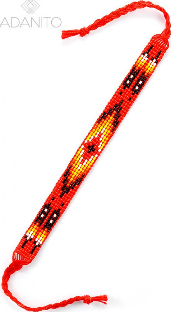 Indiánský korálkový textilní náramek je ručně vyrobený na Moravě. Celková délka je 330 mm. Rozměr korálkové části je 160 x 13 mm. Vzhledem k tomu, že se jedná o ruční práci, nemusí být počty a barvy korálků stejné do nejmenších detailů jako na fotografii.