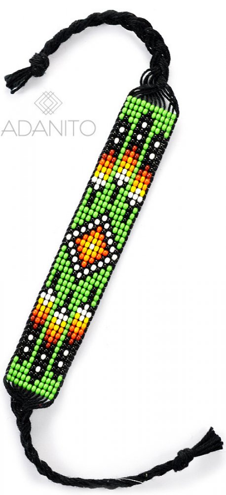 Indiánský korálkový textilní náramek je ručně vyrobený na Moravě. Celková délka je 270 mm. Rozměr korálkové části je 105 x 20 mm. Vzhledem k tomu, že se jedná o ruční práci, nemusí být počty a barvy korálků stejné do nejmenších detailů jako na fotografii.