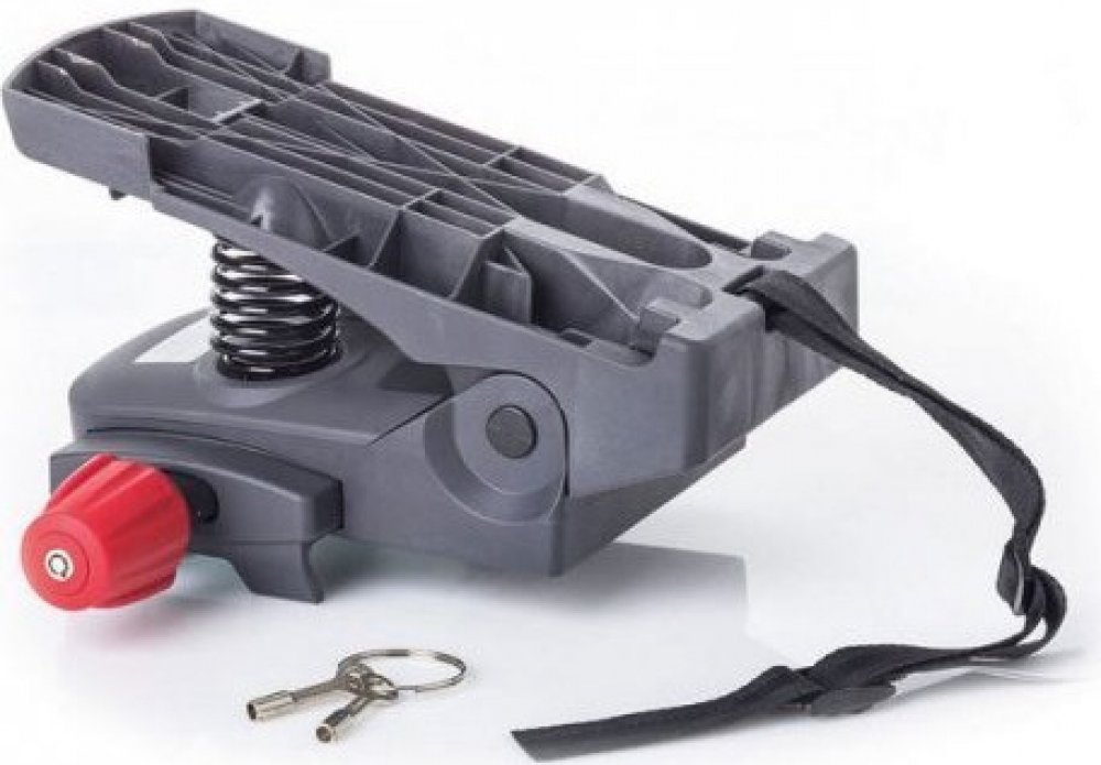 Snadná montáž sedačky na nosič (uslyšíte 3 «kliknutí» a upevňovací čep je uzamčen). Pevné a dobře fungující odpružení pro maximální pohodlí.