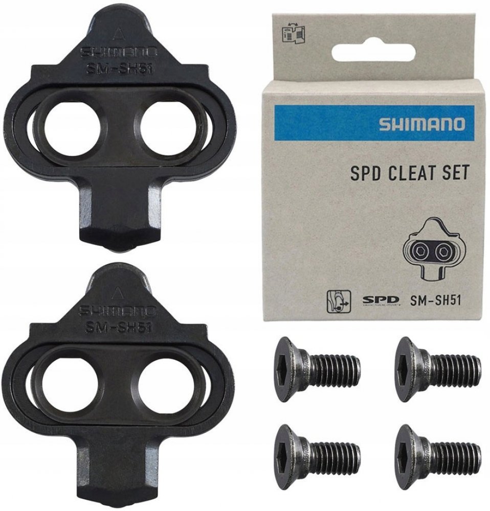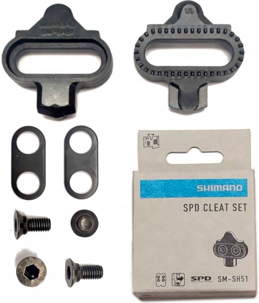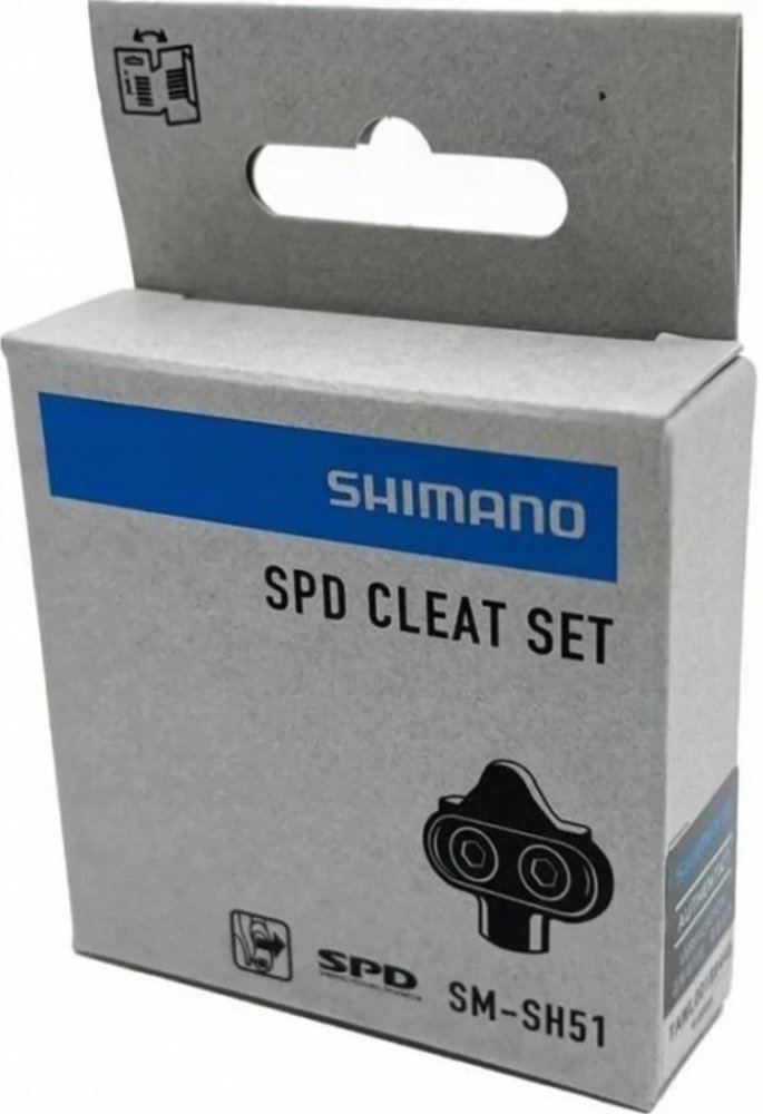 Zarážky SM-SH51, pro systém SPD, s možností uvolnění tretry z pedálu pouze v jednom směru. Lehké zapnutí zarážky do pedálu. Vhodné pro všechny pedály typu SPD, hlavně pro MTB a treking a silniční SPD, od základního modelu PDM505 až po XTR. Dodávané s upínacími prvky zarážky do tretry. Tyto zarážky jsou dodávány ke většině pedálem typu SPD.