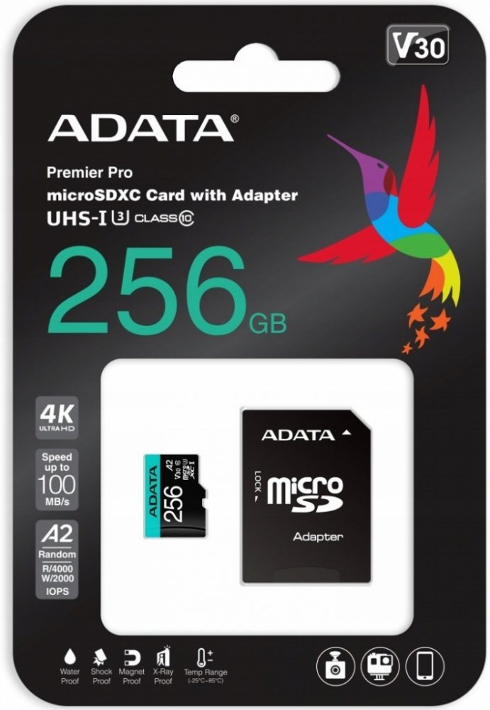 256 GB ADATA microSD 100 MB/s 80 MB/s Class 10 UHS-I U3 V30