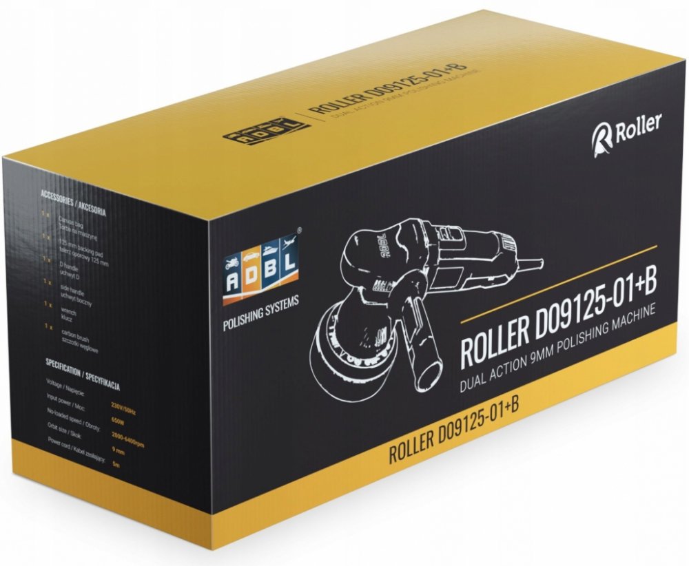 Leštička ADBL Roller D09125-01 Malá hmotnost a kompaktní rozměry leštičky ADBL ROLLER D09125-01 umožňují uživateli dostat se na místa, na které se s jinými leštičkami těžko dostane. Díky krátké hlavě stroje a pevnému tělu je možné pracovat na úzkých místech, jako jsou např. nárazníky nebo zrcátka. 9 mm výkmit podporovaný spolehlivými lešticími komponenty zaručuje dokonalou korekci laku. Výkonný motor leštičky ADBL Velmi výkonný motor a efektivní regulace rychlosti v kombinaci s leštícími kotouči ADBL vedou rychle k požadované úrovni korekce laku. Leštička ADBL Roller disponuje systémem Soft Start (pomalý náběh), ergonomickým designem a dlouhým elastickým napájecím kabelem. Stroj je technicky bezporuchový díky své promyšlené a otestované konstrukci potvrzené ve vícestupňových a multicentrických testech, které byly provedeny před uvedením do prodeje. Technická specifikace leštičky ADBL Maximální výkmit: 9 mm Průměr unašeče: 125 mm Vstupní výkon: 650W Otáčky za minutu: 2000 - 6400 rpm Délka kabelu: 5 m Hmotnost: 2 kg Elektronická regulace rychlosti: ano Systém Soft Start: ano Třída ochrany: II Provozní napětí: 230 V / 50 Hz V balení najdete Leštičku ADBL Roller D09125-01. 125 mm unašeč. Boční držák. Držák typu "D". Náhradní uhlíky. Klíč k uvolnění unašeče. Tašku na leštičku.
