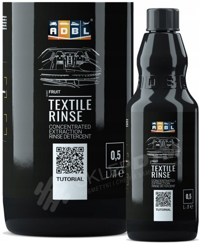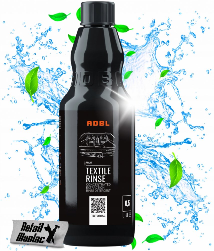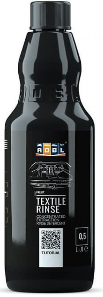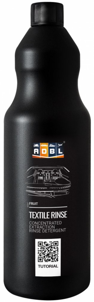 ADBL Textile Rinse - výrobek pro mokré čištění interiéru. Zlepšuje vyplachování nečistot, které byly předtím rozpuštěny přípravkem ADBL Pre-Spray Pro. Má protipěnivé a smáčení vlastnosti. Díky neutrální hodnotě pH roztoku je proces oplachování mnohem rychlejší než při použití samotné vody. Zanechává tkaniny bez nečistot a zbytků prádla.