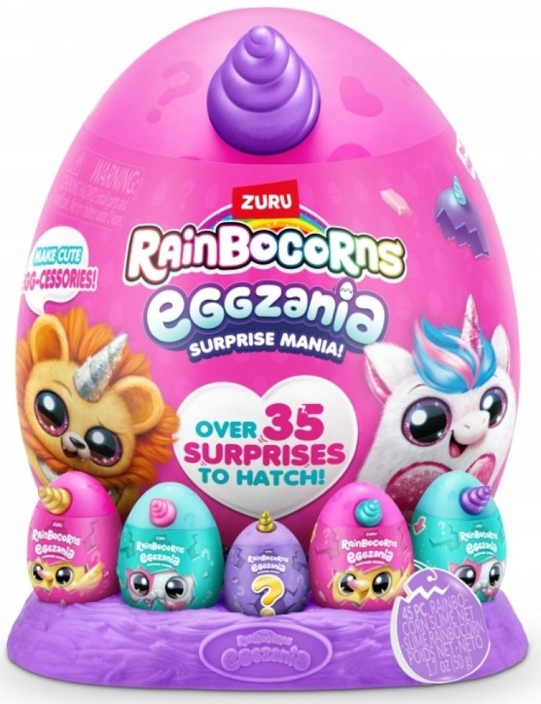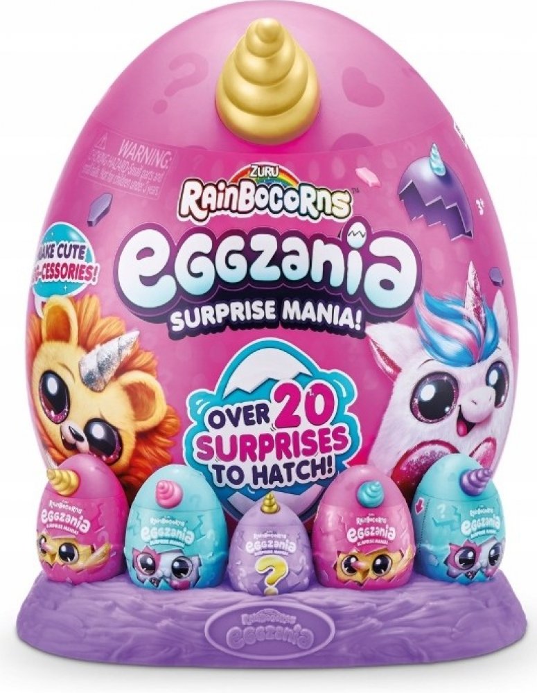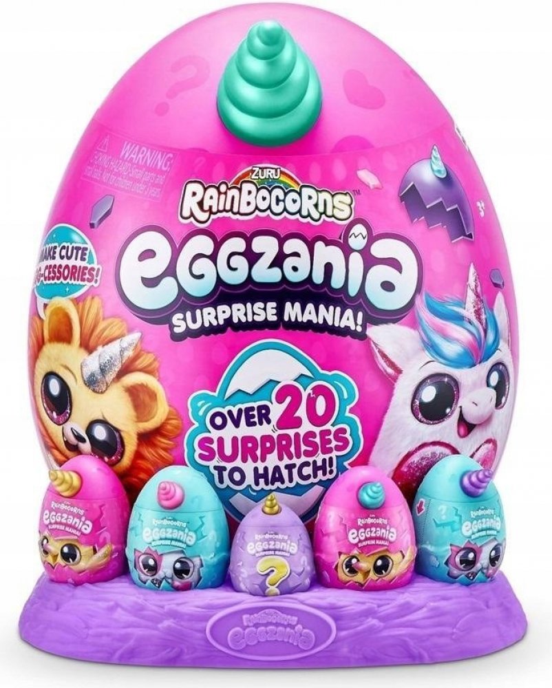 Vstupte do kouzelného světa RainBocorns a objevte neobvyklé stvoření Eggzanie. Rozbijte barevné vajíčko-překvapení a poznejte jednu z plyšových plyšáků a více než 35 okouzlujících překvapení. Uvnitř čekají mj. mini figurka přizpůsobená velké plyšáci, razítkům, slizu, DIY šperkům, samolepky a spoustě doplňků.