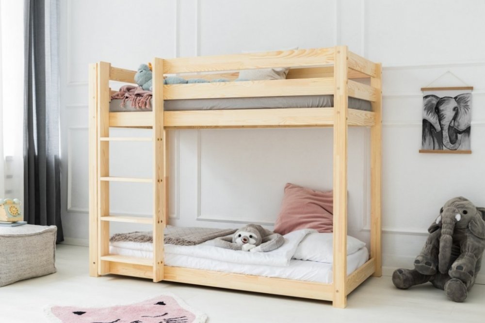 Designová patrová postel v jednoduchém scandi stylu je ideální volbou pro sourozence. Tato dvoupatrová palanda šetří místo a zároveň díky pevné a masivní konstrukci poskytne prostor pro hraní během dne.