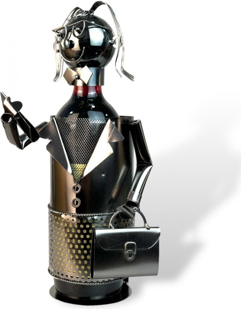 Vkusný dárek v podobě kovového stojanu na víno v designu Šéfky.