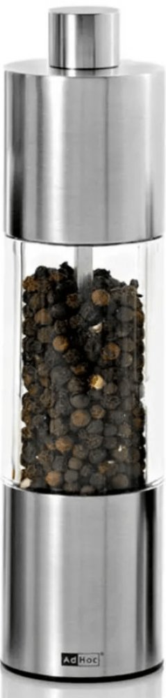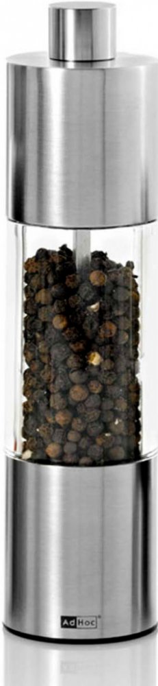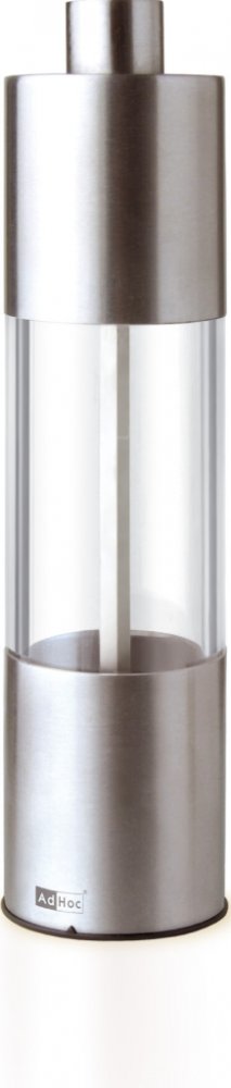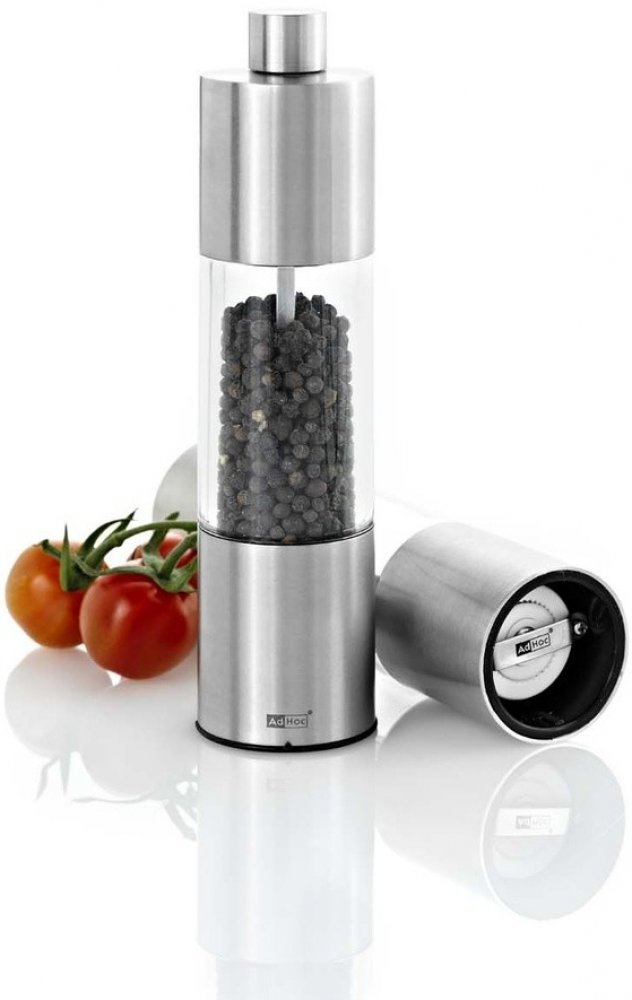 Ruční mlýnek na pepř je designově velmi pěkně navržený výrobek od společnosti AdHoc. Vhodný do každé moderní domácnosti. Ruční mlýnek na pepř je vyroben z nerezu a akrylu. Díky tomu, že je průhledný, když je naplněn pepřem stává se požitkem nejen pro chuťové buňky, ale také pro oči.Doplňující informace:- materiál: nerez/akryl- výška: 18 cm- keramický mlecí mechanismus