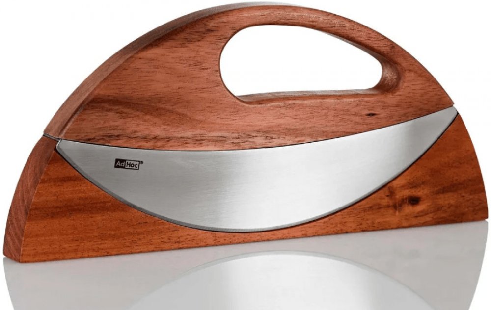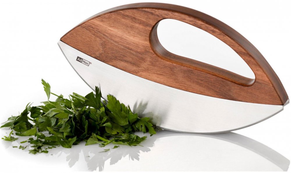 Dvoubřitá kolébka AdHoc WAVE2 vhodná k sekání a krájení bylinek, ale i koření, zeleniny, či ovoce. Vyznačuje se praktičností a efektivitou. Pohodlné a snadné použití díky dřevěné rukojeti, která padne do ruky. Obsahuje úložný stojan. Rozměry se stojanem (dxvx š): 19,8 x 10,2 x 2,2 cm Rozměry bez stojanu (dxvx š): 19,8 x 10,9 x 2,2 cm
