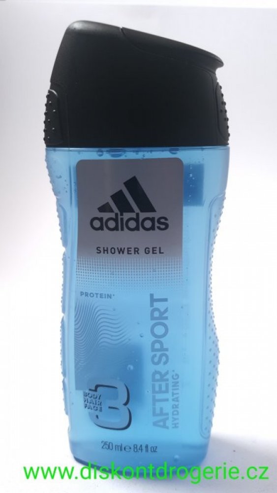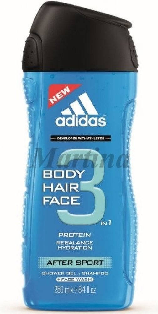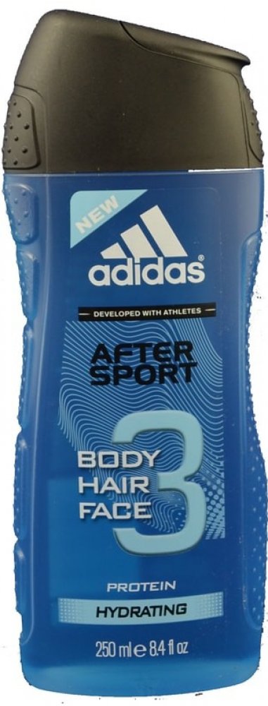 After Sport - sprchový gel 250 ml. Citrusově-svěží vůně pro aktivní muže. Vyvinutý ve spolupráci s vrcholovými sportovci, Adidas představuje sprchový gel na tělo a vlasy pro muže After Sport. Je vhodný především po sportu, protože obsahuje protein, který pomáhá navrátit vašim vlasům a pokožce přirozenou hydrataci.