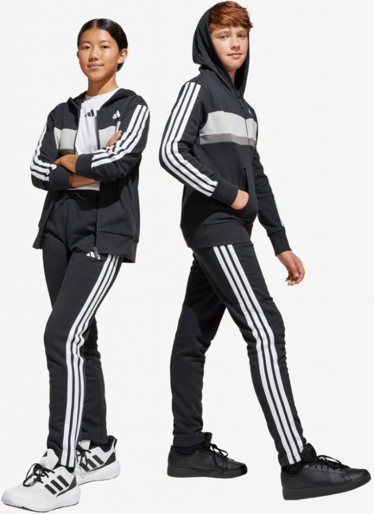 Tepláková souprava adidas Seasonal Essentials Tiberio je unisex pro juniory, vyrobená pro každodenní pohodlí a pohyb. Detaily Kladný střih s mikinou na zip po celé délce a tepláky se středním pasem Klokaní kapsy na mikině a boční kapsy na kalhotách pro pohodlné nošení Elastický pas se stahovací šňůrkou pro bezpečné uchycení Žebrované manžety a lem udržují teplo Ikonický design se 3 proužky a logo ...