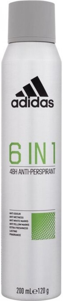 Adidas 6 In 1 48H Anti-Perspirant Antiperspirant 200ml nabízí dlouhotrvající ochranu proti pocení až na 48 hodin. Je navržen tak, aby poskytoval šest výhod v jednom: ochranu proti zápachu, vlhkosti, podráždění, skvrnám, zbytkům a pocitu svěžesti.