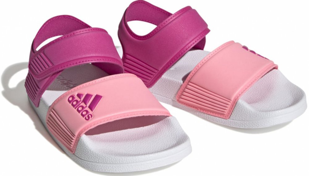 Tyto dětské sandály adidas ADILETTE SANDAL K se inspirovaly klasickým modelem Adilette. Jsou ideální volbou pro letní dny strávené u vody. Pásek na suchý zip usnadní přezouvání. Rychleschnoucí svršek jim zaručí pohodlí, i když budou muset na břeh.