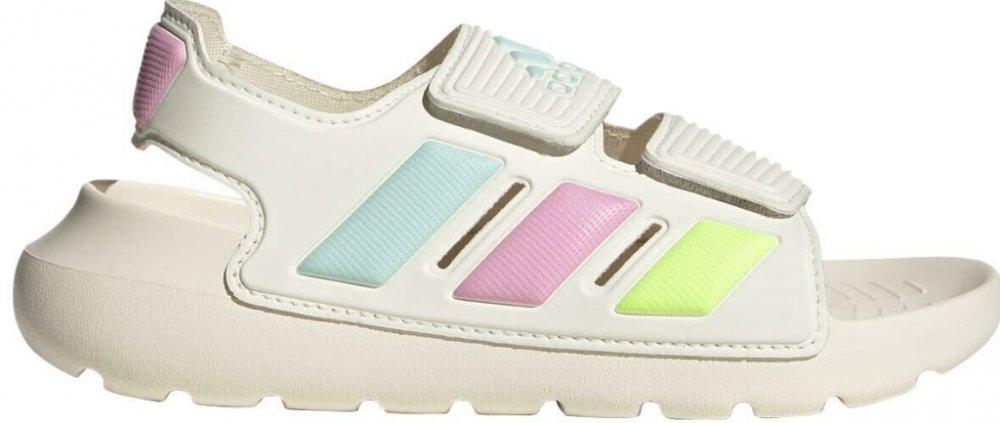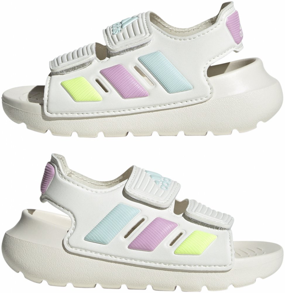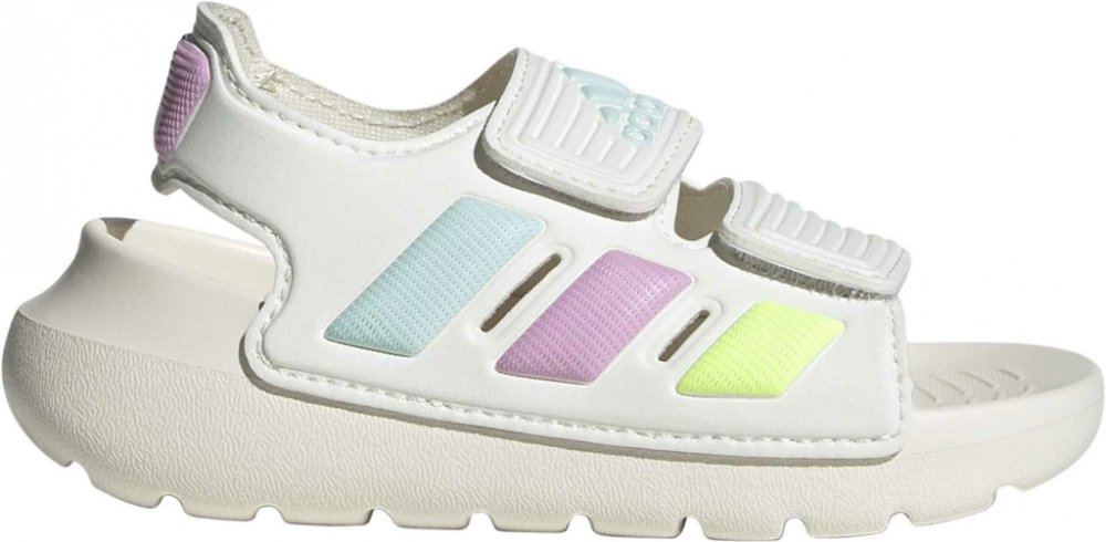 Dětské sandály adidas ALTASWIM 2.0 I jsou ideální volbou pro malé objevitele. Díky nastavitelným páskům na suchý zip se snadno nazouvají a pevně drží na noze. Lehká a flexibilní syntetická podešev zajistí pohodlí na každém kroku, ať už na pláži, u bazénu nebo na zahradě. Stylové 3 proužky adidas dodají malým dobrodruhům ten správný look!