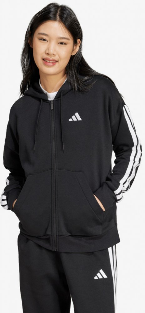 S dámskou mikinou adidas ESSENTIALS 3-STRIPES HOODIE vás nezaskočí ani nečekané ochlazení. Má kapuci, stahovací šňůrky a klokaní kapsy, které rozděluje zip.