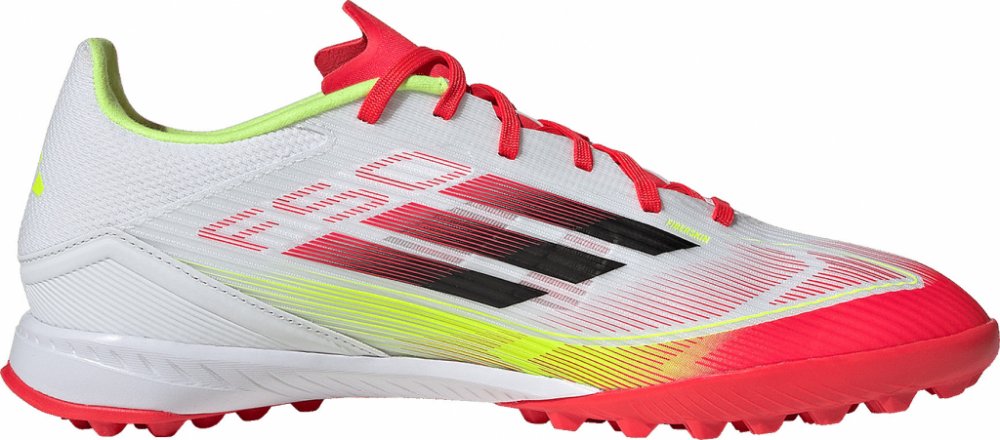 Užijte si rychlost s modelem adidas F50. Objevte svůj maximální potenciál zrychlení, pohybu a rychlosti. Tyto lehké pánské turfy adidas F50 LEAGUE TF mají strečový jazyk a svršek Fiberskin s potiskem Sprintgrid na špičce. Kombinace mezipodešve z EVA a přilnavé gumové podešve vám na umělém trávníku zaručí pohodlí a návratnost energie.