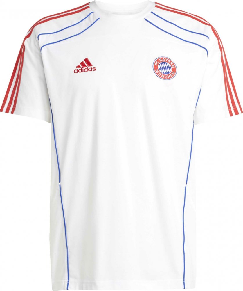 Vraťte se v čase s tímto tričkem adidas FC BAYERN, které vyzařuje energii let 21. století. Toto retro tričko s vyšitým erbem klubu na hrudi a velkým potiskem na zádech je ideální pro ukázku vaší vášně pro fotbal. Žebrovaný kulatý výstřih a decentní lemování dotvářejí klasický a čistý vzhled.
