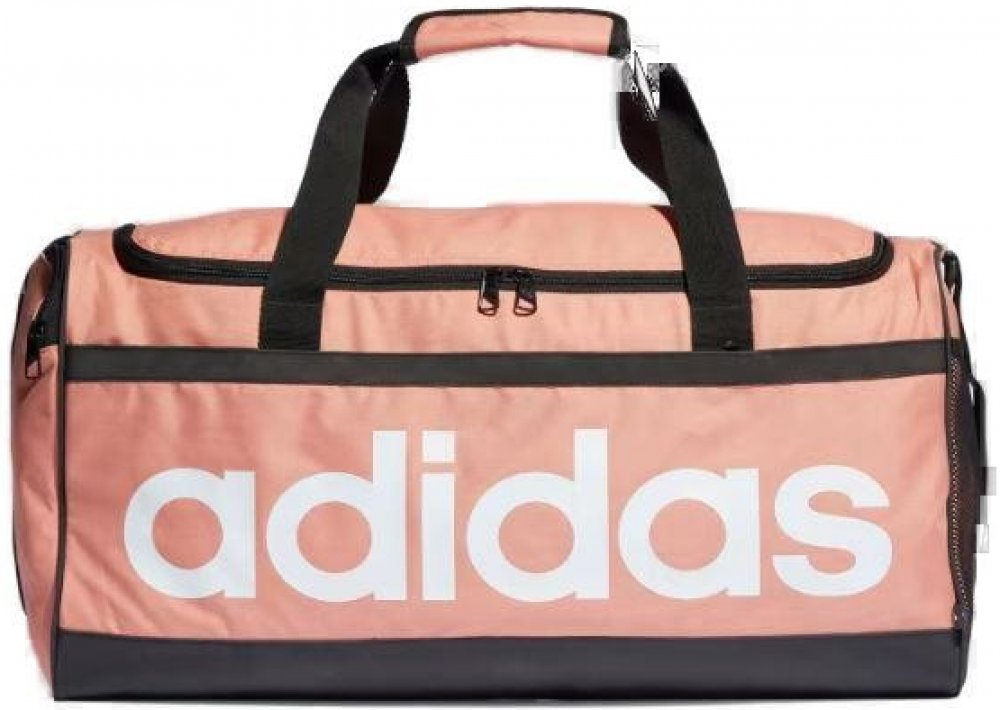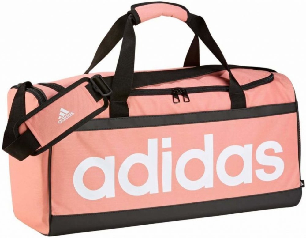 Sportovní taška od adidas v růžovém designu je ideální pro cestování nebo trénink. Poskytuje pevnou spodní část vyrobenou z recyklovaných materiálů. Prostorná hlavní komora má dvojité zipy. Uvnitř je zipová kapsa na drobnosti a síťová boční kapsa.