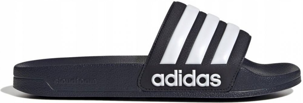Pánské pantofle značky adidas. Černé pantofle osloví moderním a přitom nadčasovým provedením, které je doplněno o klasické tři pruhy adidas v bílé barvě. Adidas pantofle pro muže jsou pohodlné na nošení díky tvarované stélce. Mezipodešev s pěnou Cloudfoam se postará o tlumení a příjemné odpružení. Protiskluzová úprava podrážky zajistí bezpečný krok i na mokrém povrchu. Pantofle pro pány jsou ideál...