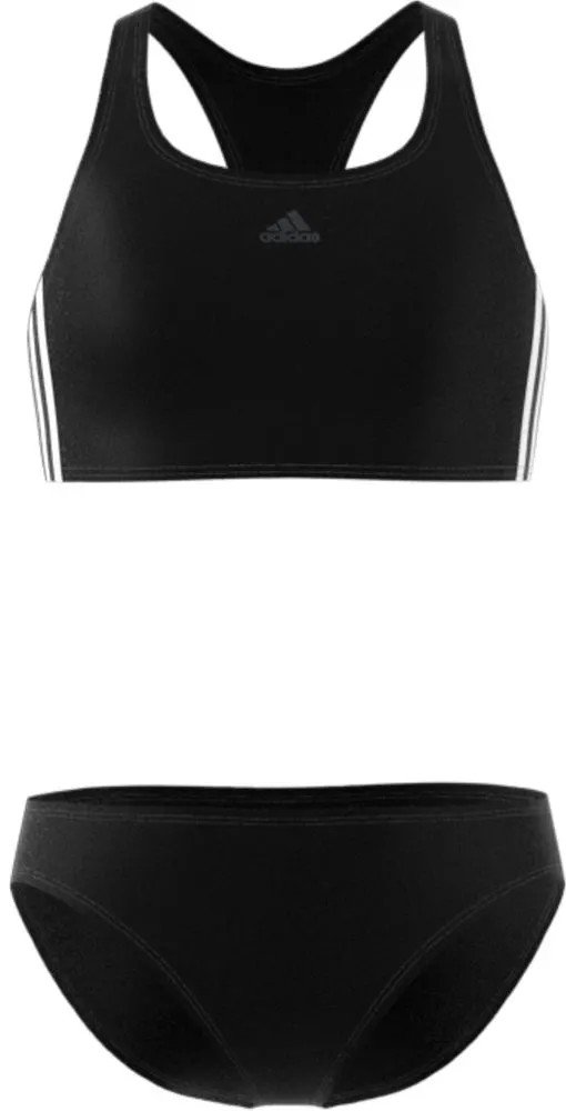 Dívčí sportovní bikiny pro kondiční tréninky. Adidas dívčí plavky FIT 2PC 3S Y jsou vyrobené z tkaniny, která obsahuje přízi z recyklovaných rybářských sítí a nylonového odpadu a je odolná vůči chloru. Zpevňující sportovní střih.