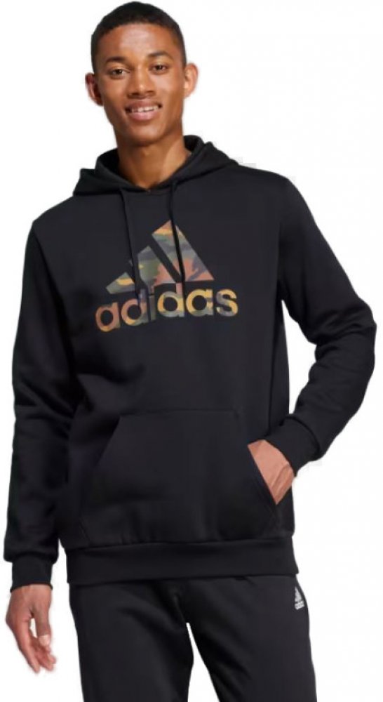 Pánská mikina značky adidas. Mikina s kapucí upoutá velkým logem adidas na přední straně. Logo se pyšní maskovacím potiskem, což dotváří její originální vzhled. Černá mikina je skvělou volbou pro různé styly oblékání. Snadno ji zkombinujte s džínami nebo tepláky značky. Díky klasickému střihu padne každé postavě. Stylová mikina garantuje vysoký komfort při pohybu. Mikinu tvoří měkký materiál s vysokým podílem bavlny, což zaručuje pohodlí po celý den. Kromě toho poskytuje spolehlivou ventilaci vzduchu. Značková mikina je nepostradatelný kousek oblečení, který by neměl chybět ve vaší skříni. Ideální pro každodenní použití, do města nebo volný čas. Detaily produktu:pánská mikina s bavlnou adidaskapuce se stahovánímlogo s maskovacím vzoremskvělá prodyšnostklokaní kapsaklasický střihBetter Cottonměkká látka s vysokým podílem bavlny