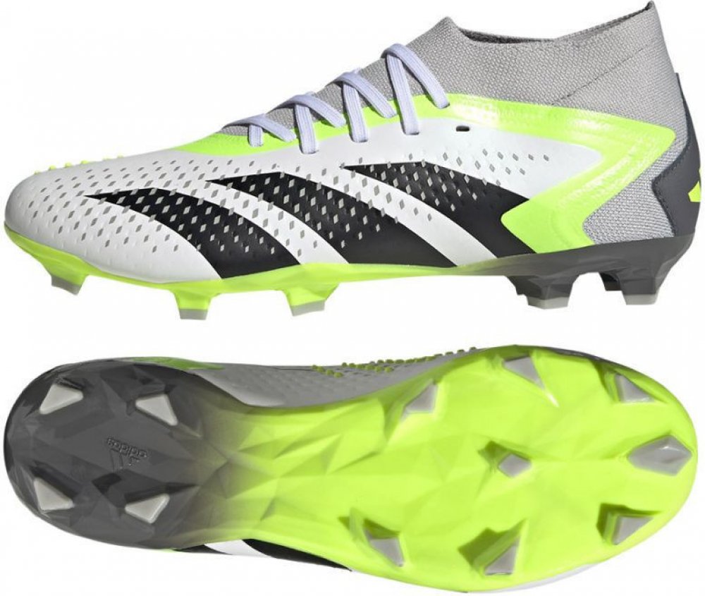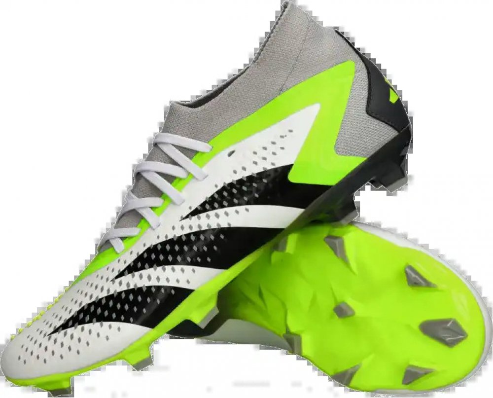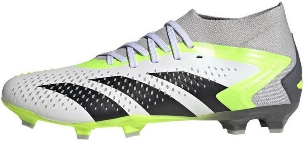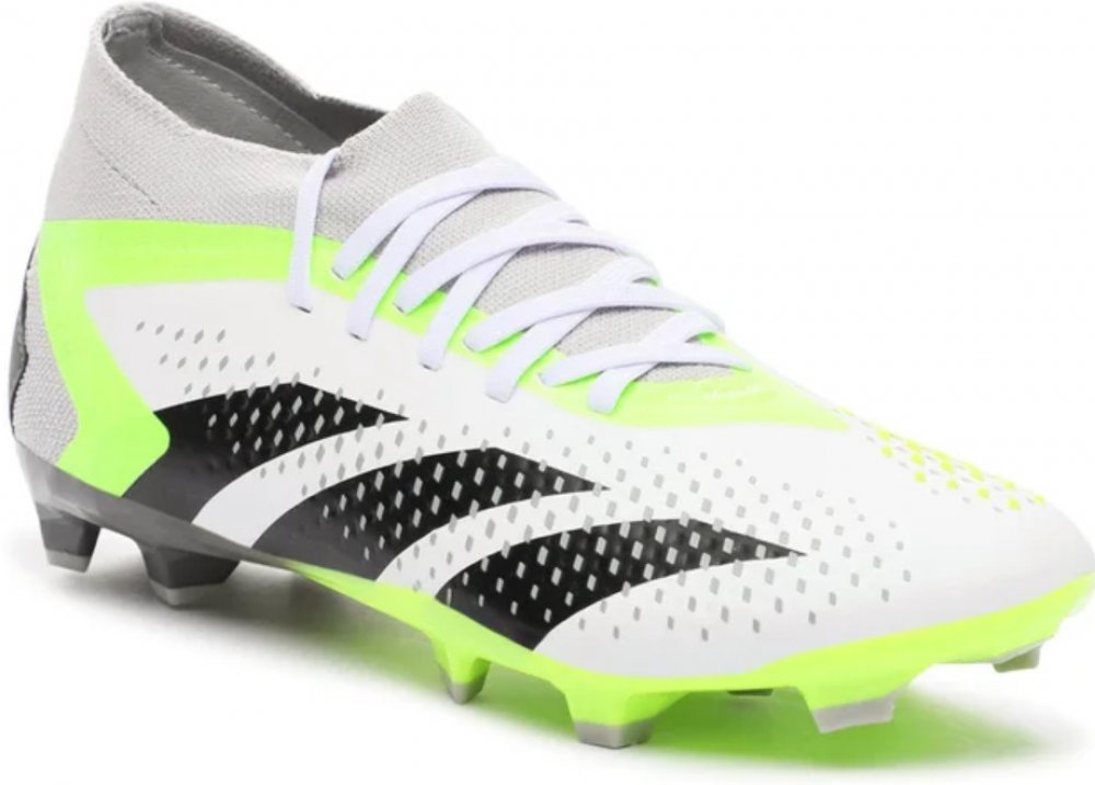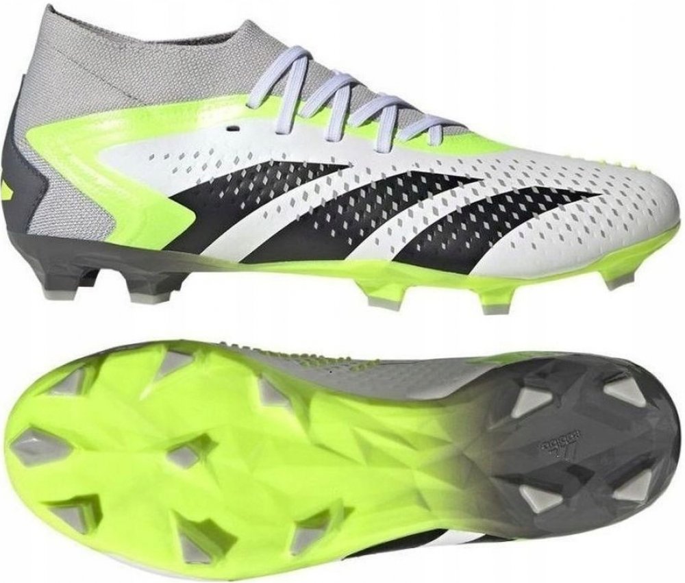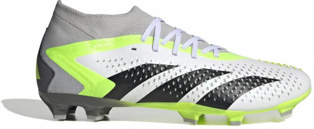 Přilnavé přesné střelecké boty vyrobené částečně z recyklovaných materiálů. Horní roh. Spodní roh. Každý roh. Model adidas Predator Accuracy je navržen pro přesné střely a dává vám jistotu, že míč zasáhne branku. Háček je ve volbě metody. Tyto kopačky mají měkký svršek HybridTouch s pryžovými prvky High Definition Grip pro flexibilitu v přední části chodidla a spolehlivou trakci. Specializovaná podešev poskytuje kontrolu na suché přírodní trávě, zatímco tvarovaná vložka zvyšuje pohodlí. Svršek je vyroben z řady recyklovaných materiálů a obsahuje minimálně 50 % recyklovaného materiálu. Tento produkt je pouze jedním z našich řešení, která pomáhají skoncovat s plastovým odpadem. Standardní střih Šněrovací design HybridTouch svršek Měkký dotek, zvýšená textura Konstrukce kotníku Tvarovaná stélka