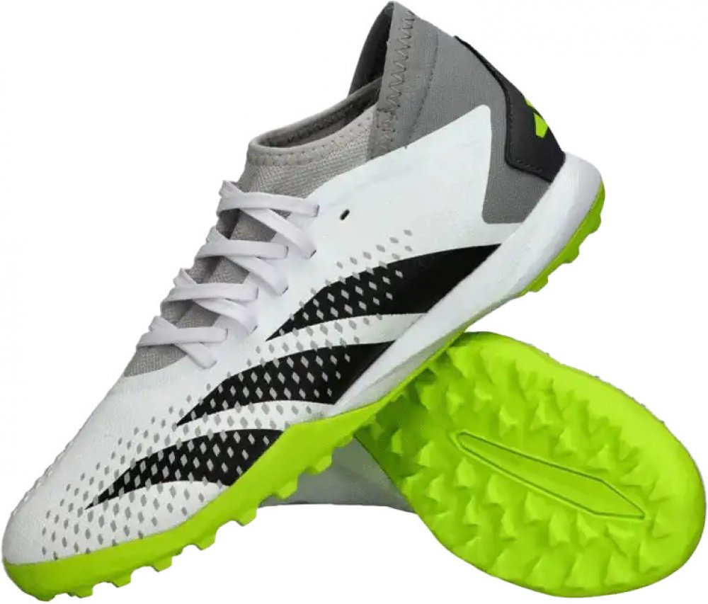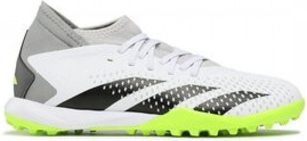 Zasáhněte svůj cíl s teniskami PREDATOR ACCURACY.3, které jsou částečně vyrobeny z recyklovaných materiálů. Kontrola + přesnost = jistota. Když je cíl na dosah, perfektně zamiřte s teniskami PREDATOR ACCURACY. Prodyšný a pružný svršek ze síťoviny na těchto teniskách je navržen pro maximální pohodlí během intenzivní hry. Tenisky mají mělký profil s klasickým šněrováním a zpevněním v oblasti prstů. Jsou ideální pro hru na umělé trávě. Jejich svršek obsahuje nejméně 50 % recyklovaných materiálů. Gumová podrážka dokonale padne. Specifikace: Fotbalové kopačky pro dospělé Navrženy pro hru na umělé trávě Šněrování Pružný svršek ze síťoviny Gumová podrážka Svršek obsahuje minimálně 50% recyklovaného obsahu