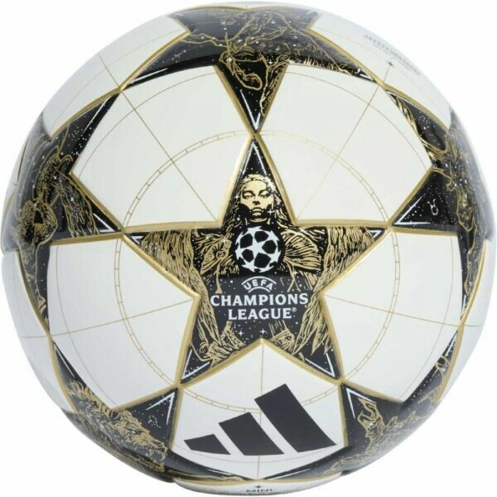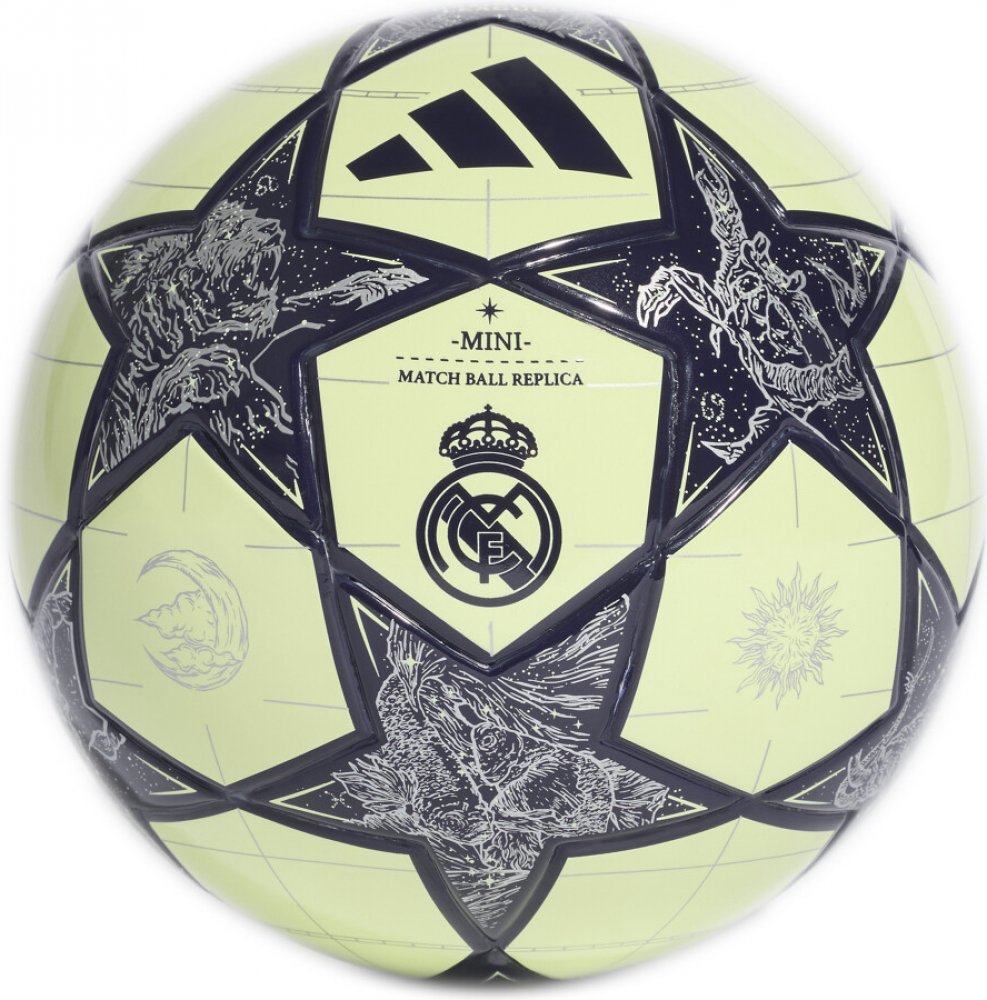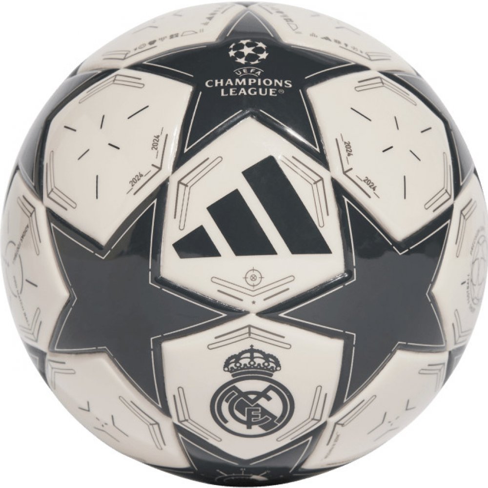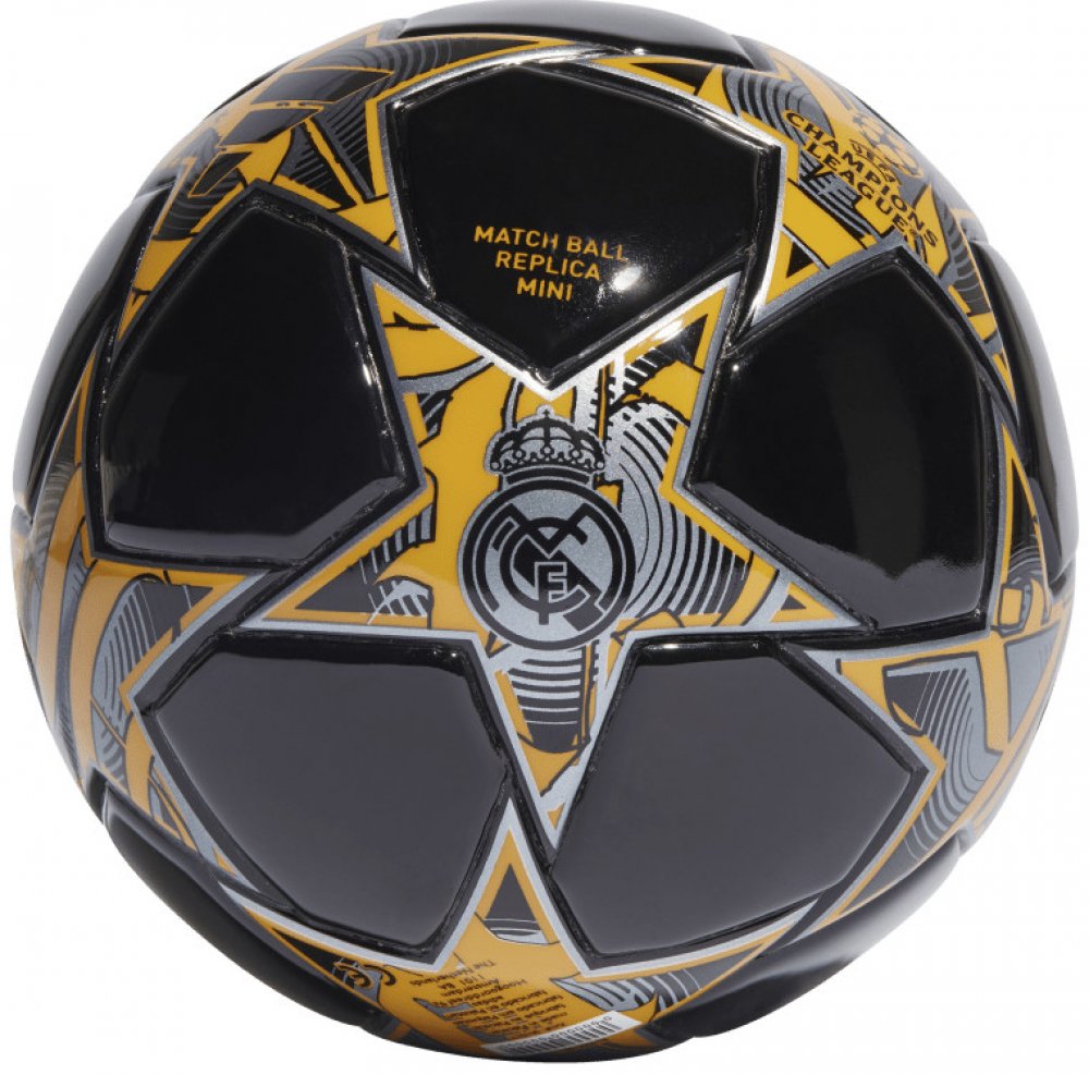 Real Madrid je nejúspěšnějším týmem UCL, a proto chápe význam hymny tohoto turnaje lépe než většina ostatních. Tento malý fotbalový míč se inspiroval oficiálním zápasovým míčem Ligy mistrů UEFA. Díky malým rozměrům a pěnovému jádru je ideální na cesty. Odolný plášť z polyuretanu zdobí nápis „The Champions“, hudební noty a 12 zářivých hvězd.