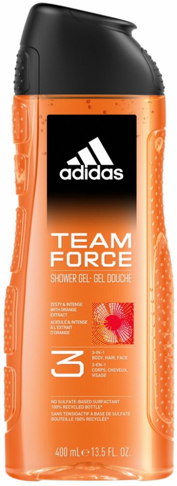 Pánský sprchový gel Team Force s atraktivní mužnou vůní je vhodný jak na tělo, tak i obličej a vlasy. Dokonale myje veškeré nečistoty a zanechá pokožku svěží a důkladně hydratovanou.