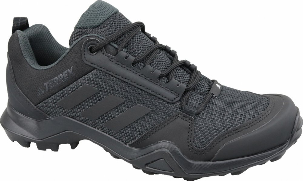 Barva: Černé. Druh podešve: Syntetický materiál. Sezóna: Celoroční. Tvar: Polobotky. Typ uživatele: Pánské. Typ zapínání: Tkaničky. Výška podpatku: plochý (do 3 cm). Barva výrobce: Core Black / Core Black / Carbon Svršek: Textil / syntetika a v originálním balení Lehká obuv adidas Terrex AX3 poskytuje oporu v náročném terénu. Odolná gumová podrážka navíc zaručuje vynikající trakci na suchém i mokrém povrchu při trailovém běhu nebo turistice. Svršek: Textil se syntetickými překryvy. Vnitřek: Textil se silným polstrováním na patě. Zesílená špička a pata z TPU pro větší ochranu. Reflexní třípruhové proužky. Měkce polstrovaný textilní jazyk. Textilní poutko na patě. Předtvarovaná stélka z EVA. Podešev z materiálu Continental? Rubber. Hrubý běhoun pro optimální přilnavost. Značka: adidas Performance, Pohlaví: Pánské, Typ produktu: Trekingová obuv, Barva: Černá, Materiál: Textil Zapínání: Šněrování na tkaničky