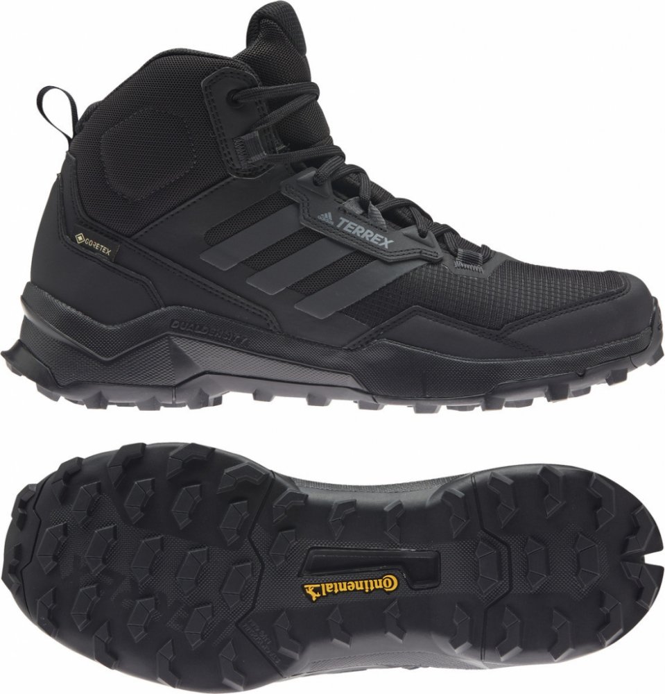 Po každém výletu téměř slyšíte, jak vaše nohy chválí tyto boty. Turistický model adidas Terrex vám umožní objevovat svět prakticky bez omezení. Jejich design kombinuje lehkost trekových bot se stabilitou středně vysokých turistických bot pro turistiku, horolezectví a via ferraty. Překonávání potoků a mokrých cest je snadné díky membráně GORE-TEX, která udrží vaše nohy v suchu. Přilnavost za každého počasí díky gumě Continental™ znamená, že můžete věřit AX4, že vás doveze do cíle bez újmy na vašich nohou. Tento produkt je vyroben z Primegreen, řady vysoce kvalitních recyklovaných materiálů. Svršek je vyroben z 50 % z recyklovaných materiálů. Model neobsahuje nově vyrobený polyester. Standardní střih Model na šněrování Síťovaný, syntetický svršek s voděodolnou membránou GORE-TEX Lehký model Tvarovaná stélka Mezipodešev EVA se zvýšenou hustotou Gumová podešev Continental™ Primegreen