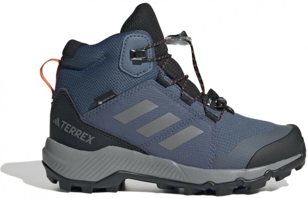 Dětské turistické boty Adidas Terrex Mid GTX K s membránou GORE-TEX chrání nohy před vlhkem. Pohodlí, odolnost a recyklované materiály pro malé průzkumníky. Spolehlivé boty pro malé dobrodruhy