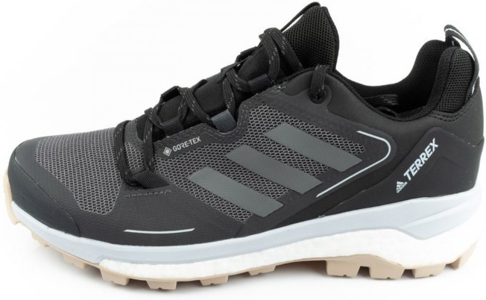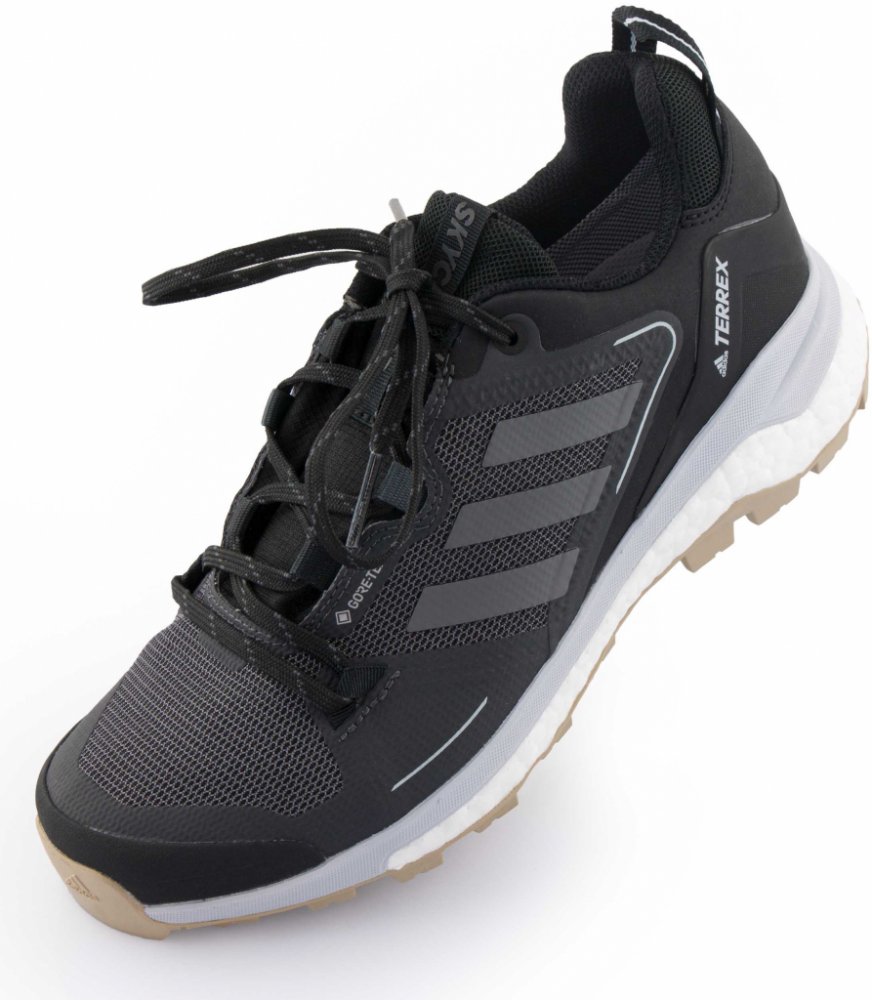 Dámská obuv Terrex od značky Adidas Brande.Model Terrex Skychaser je stvořen pro náročný terén. energie díky mezipodešvi Adidas Boost,poskytuje pružnost a skvělou nost.Stabilizační rám z pěny EVA.Podešev Continental™ zaručuje stabilitu a trakci na mokrém i suchém povrchu. Voděodolná membrána GORE-Tex chrání před vniknutím vody a umožňuje noze dýchat.Tvarovaná stélkase anatomickypřizpůsobí chodidlu...
