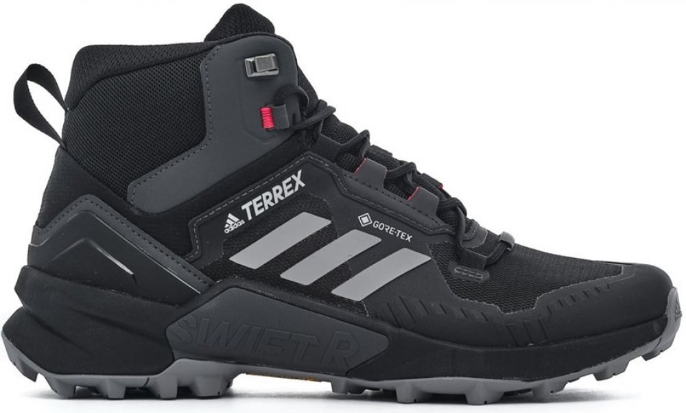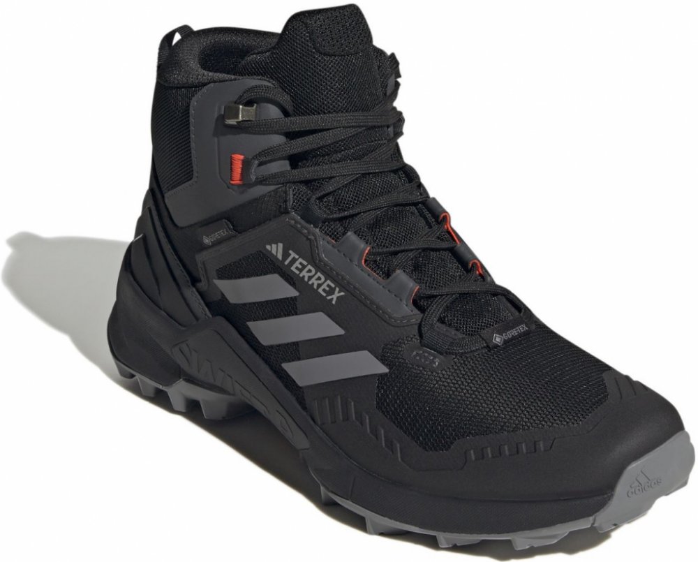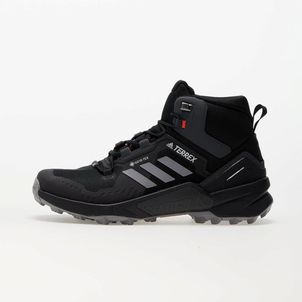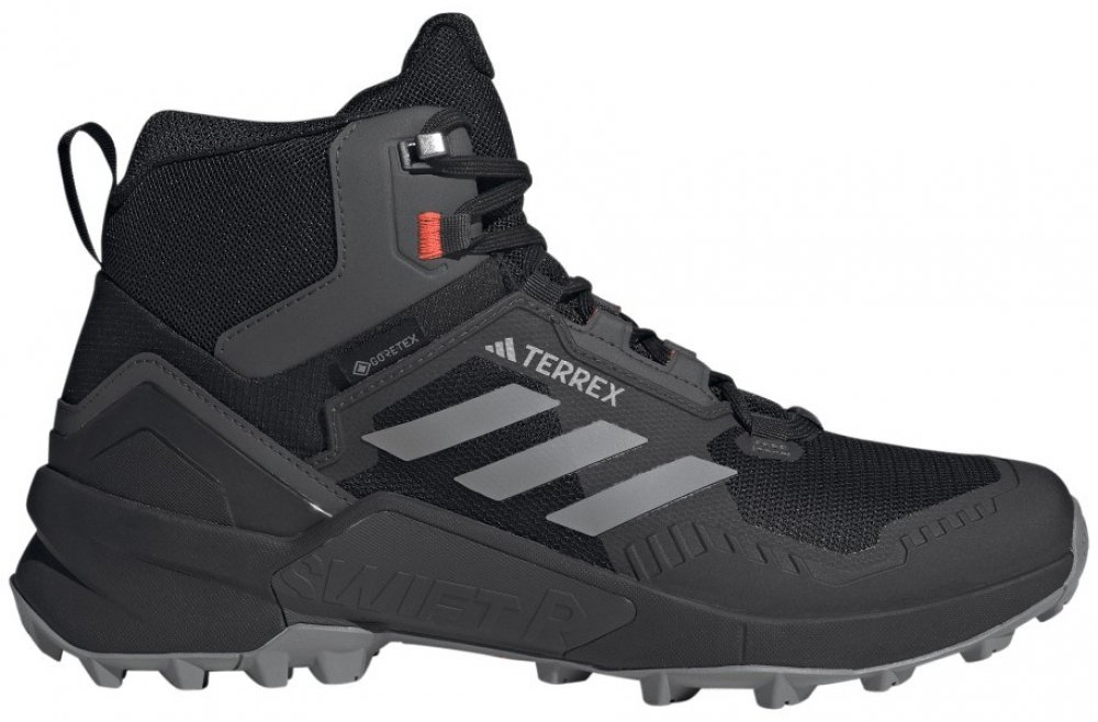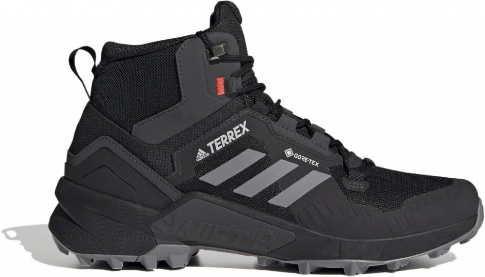 Turistická obuv Terrex Swift R3 Mid GTX Adidas kombinuje odpružený a lehký design trailových běžeckých bot a všestrannost a stabilitu turistických bot.